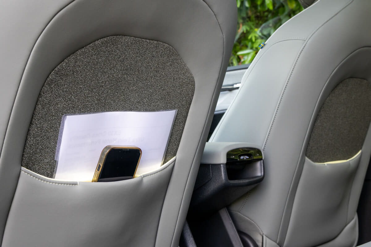 • EX30 Cross Country Ultra Twin Motor Performance:シートバックポケットには、スマホサイズのセカンドポケットが付く