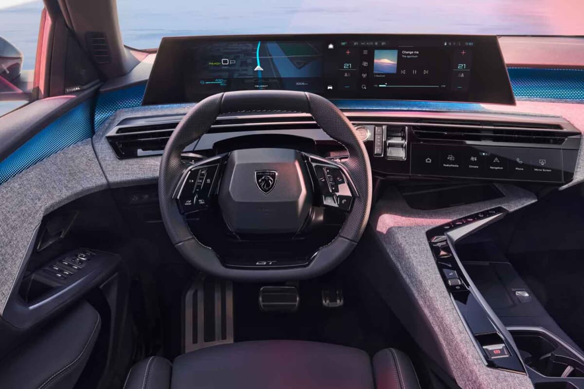 インテリアには、21インチのパノラミックスクリーンを配した新開発「PEUGEOT Panoramic i-Cockpit(プジョー パノラミック アイコックピット)」を採用。スクリーンはドライバーに向けて緩やかにカーブし、視認性と操作性を高める設計だ。中央にはカスタマイズ可能な10個のショートカットキー「i-Toggles」が配置され、操作性にも配慮されている。