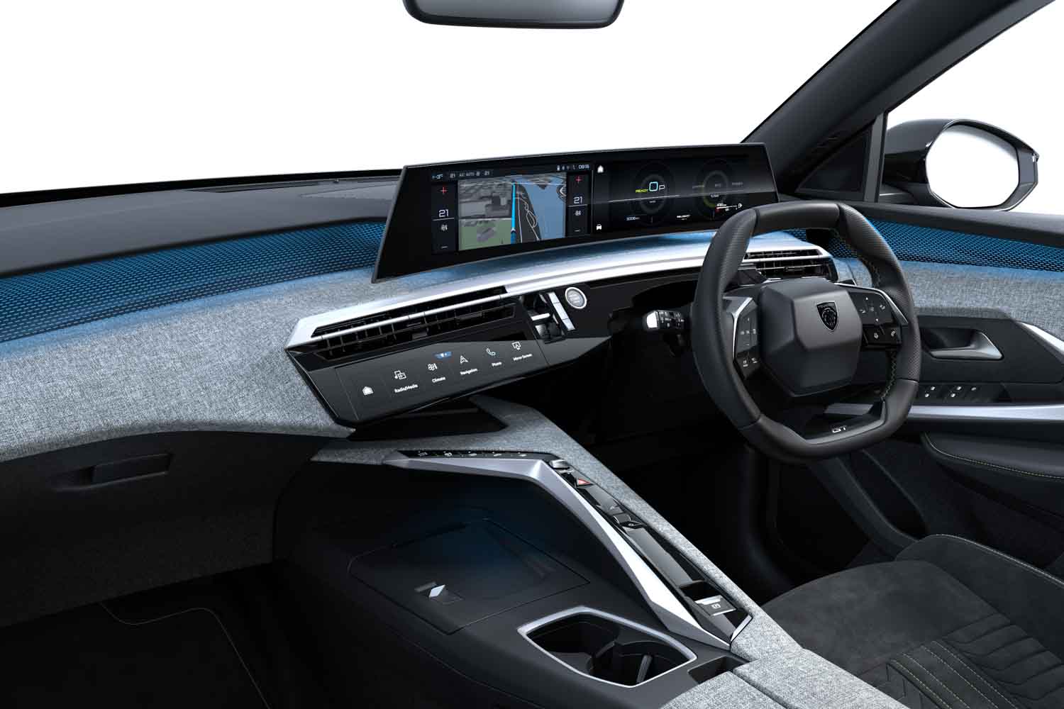 GTアルカンタラパッケージでは、アルカンタラ素材のシートを採用。プジョー初搭載のアダプティブボルスター機能により、体格やシチュエーションに応じたサポートが可能となる。アンビエントライトは8色から選択でき、時間帯や気分に合わせた車内演出が楽しめる。