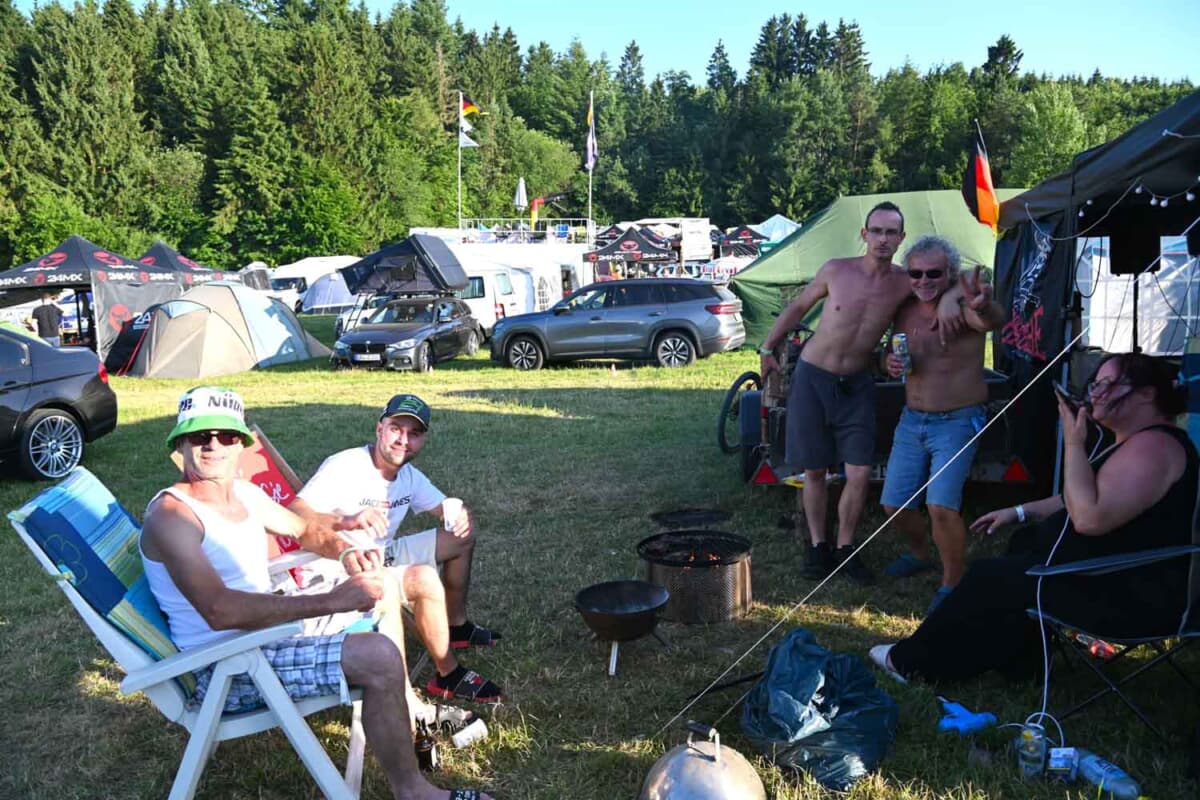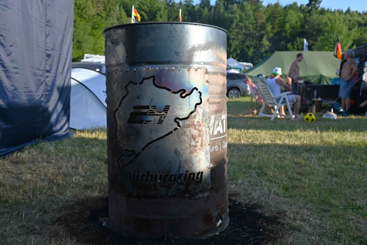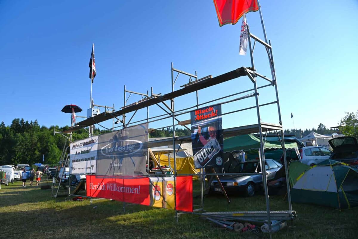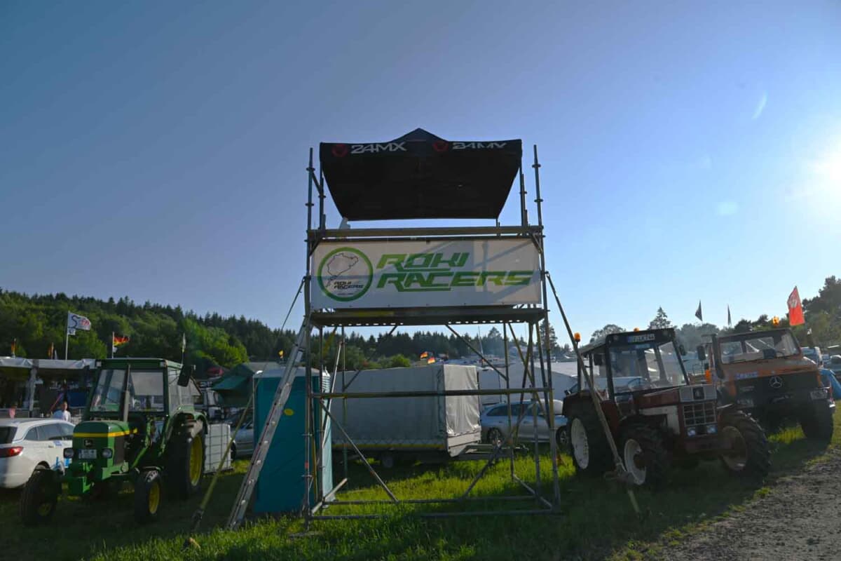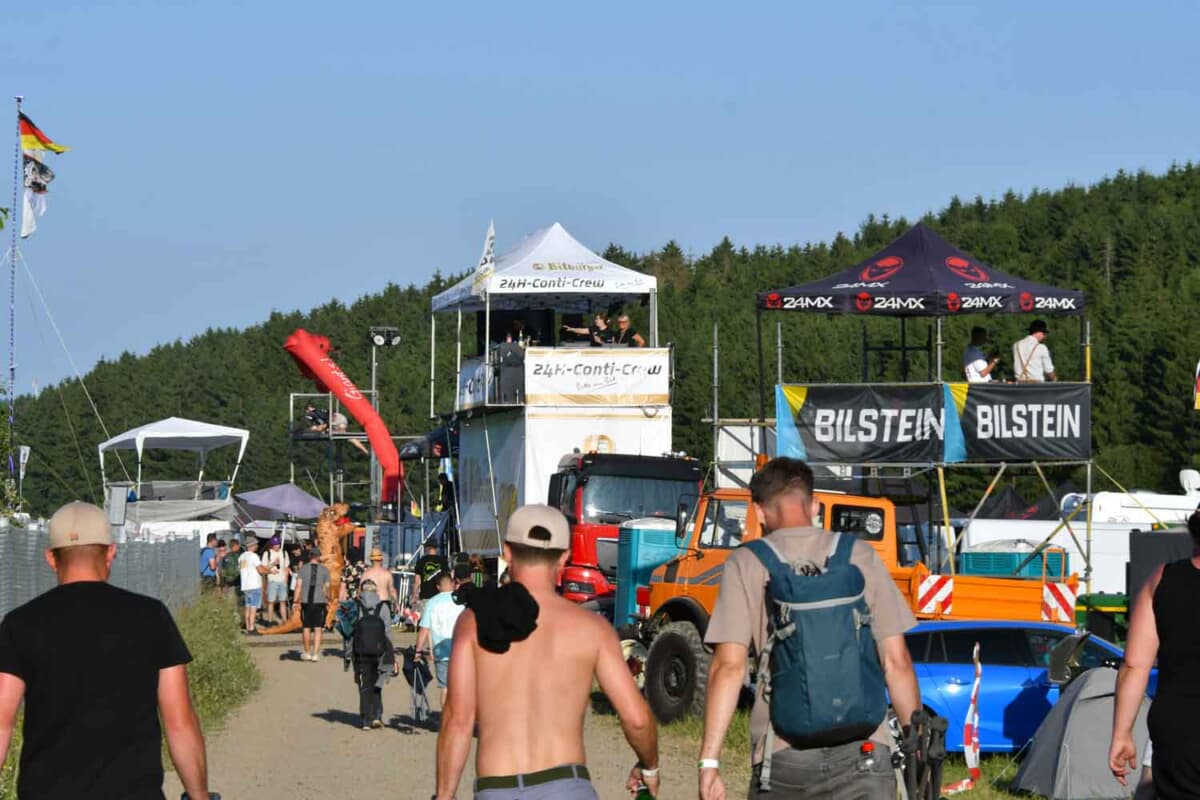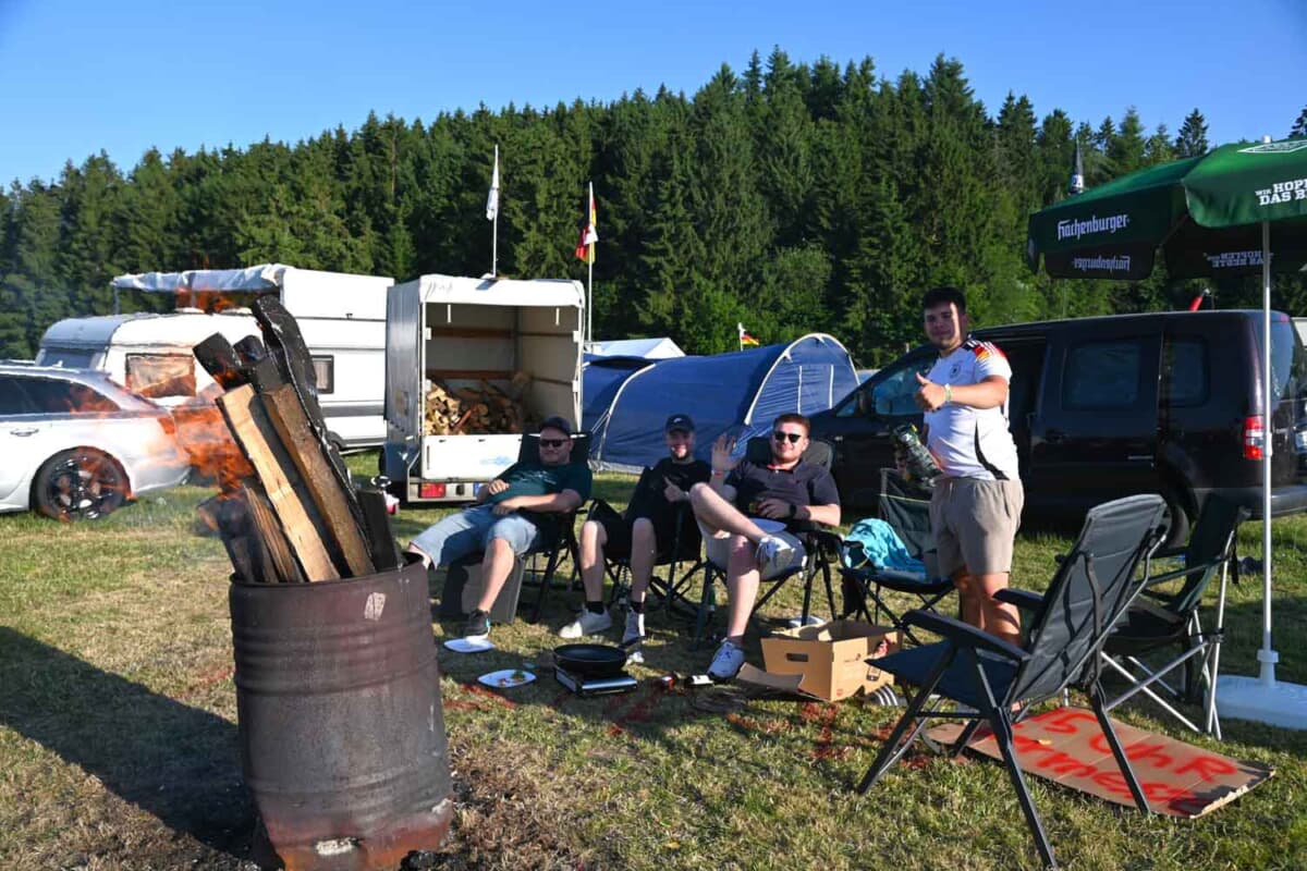 予選では、日本からいらしたメディアの先輩方がコースサイドで撮影されるとのことで、私も久々にご一緒しました。ニュルのコースサイドといえば、キャンプをしながら応援するクレージーなファンが多いことでも有名です。この日は木曜日ということもあり比較的おとなしかったですが、それでも個性的なキャンプスタイルや応援用やぐらを見せてもらうのは楽しい時間です。すでにデキ上がっている(酔っ払っている)方も多く見かけました(笑)。