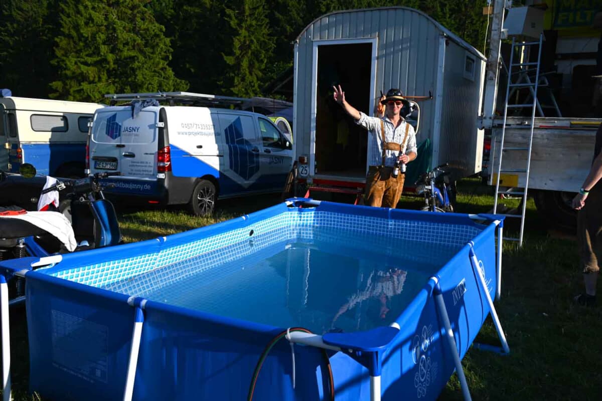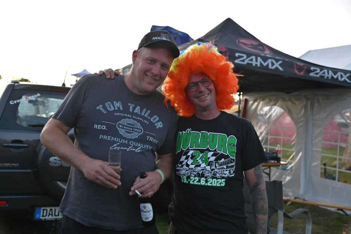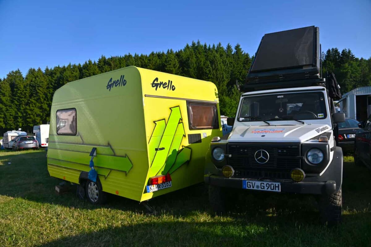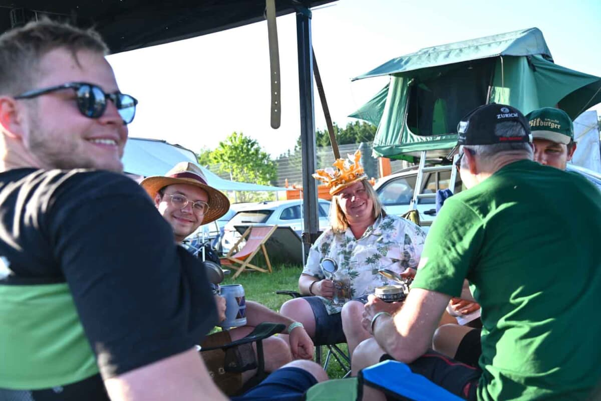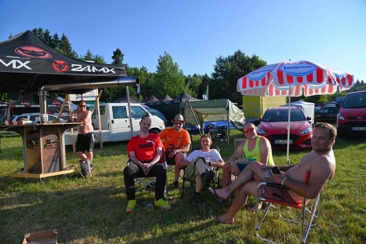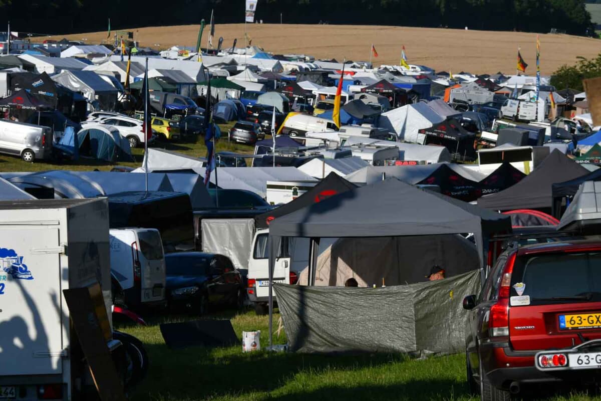予選では、日本からいらしたメディアの先輩方がコースサイドで撮影されるとのことで、私も久々にご一緒しました。ニュルのコースサイドといえば、キャンプをしながら応援するクレージーなファンが多いことでも有名です。この日は木曜日ということもあり比較的おとなしかったですが、それでも個性的なキャンプスタイルや応援用やぐらを見せてもらうのは楽しい時間です。すでにデキ上がっている(酔っ払っている)方も多く見かけました(笑)。