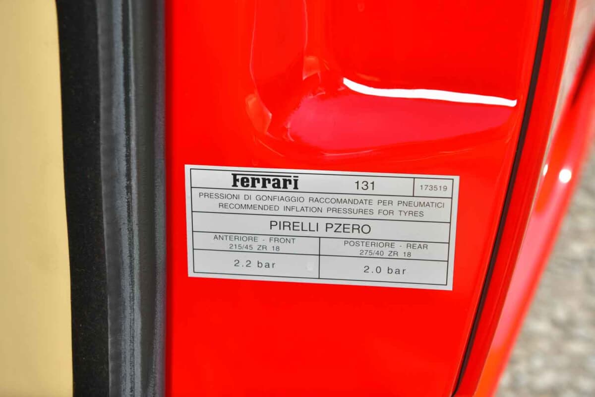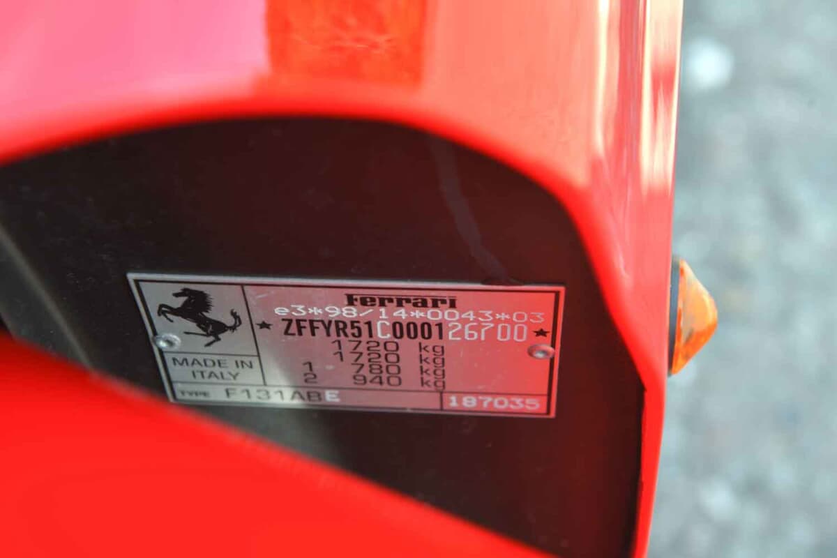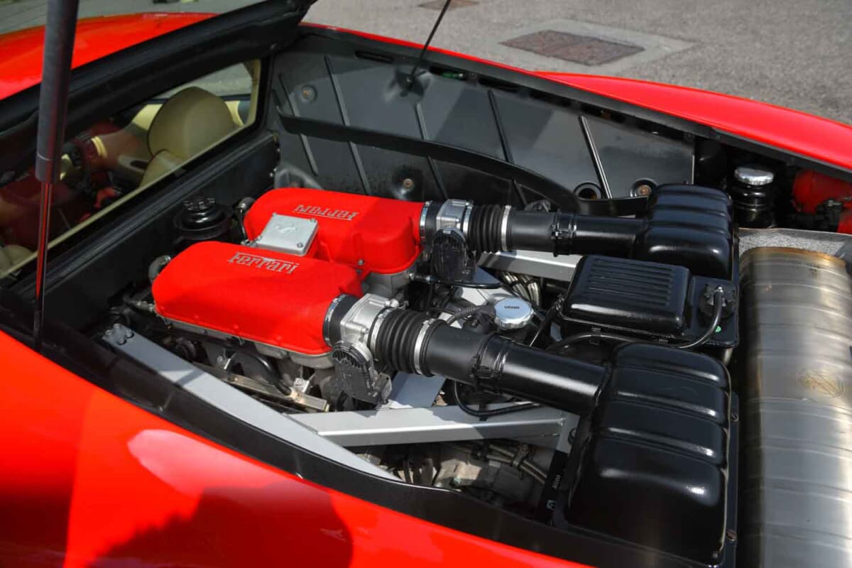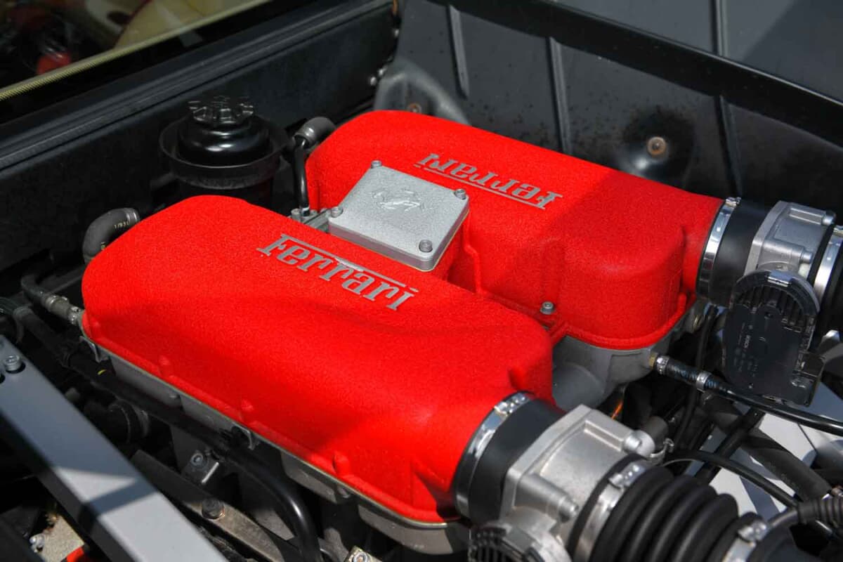 F355から引き継がれたのはDOHC40バルブのV型8気筒エンジンのみだったが、ストロークを1mm延長し、排気量は3586ccへと拡大。最高出力は400psに達した。組み合わせは3ペダルの6速MTに加え、2ペダルのセミAT「F1マチック」が選択可能であった。この軽量ボディとパワートレーンの組み合わせにより、0→100km/h加速4.5秒、最高速295km/hという性能を誇った。