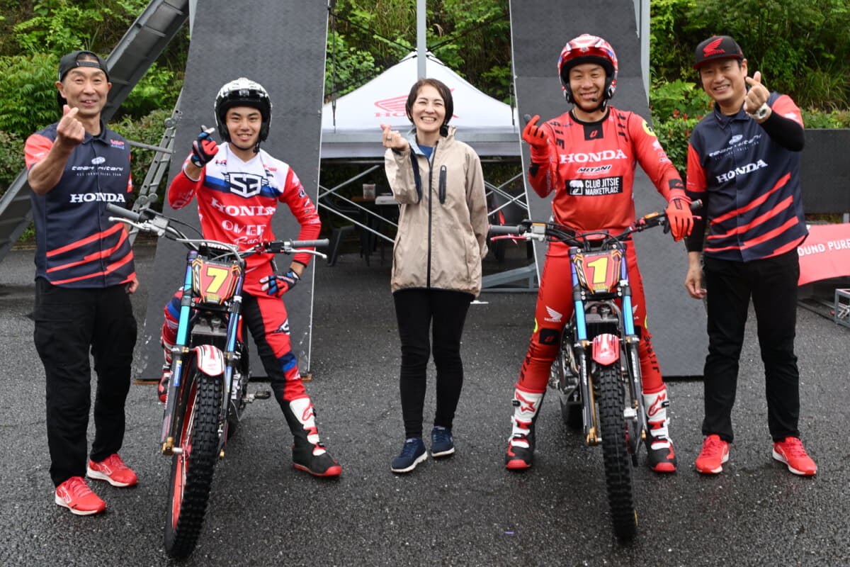 パドックには本格的なトライアル用のセクションが組まれ、そこに待機していたのは、赤地にゼッケン「1」を付けたホンダRTL-RR。つまり国内最高峰クラスのチャンピオンマシンです。