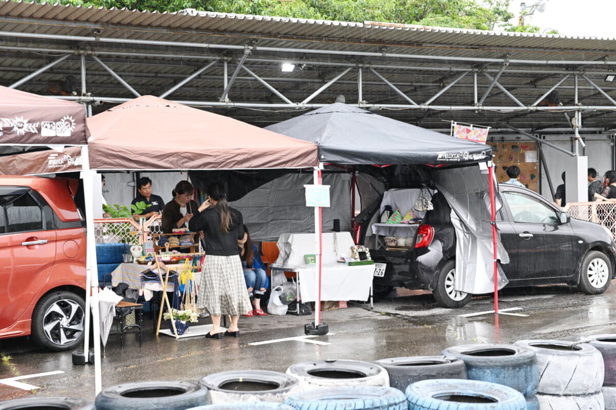 イベントのコンセプトは「モータースポーツと地域をよりよくつなぐ」。場内には飲食のキッチンカーだけでなく、小物雑貨の販売や占いの館といったブースが並ぶ「Go! 近所マルシェ」も同時開催。モータースポーツ一色ではない、誰でも楽しめる雰囲気になっていました。こうした柔らかな演出は、女性アナウンサーならではの視点かもしれません。
