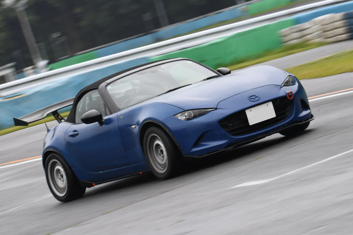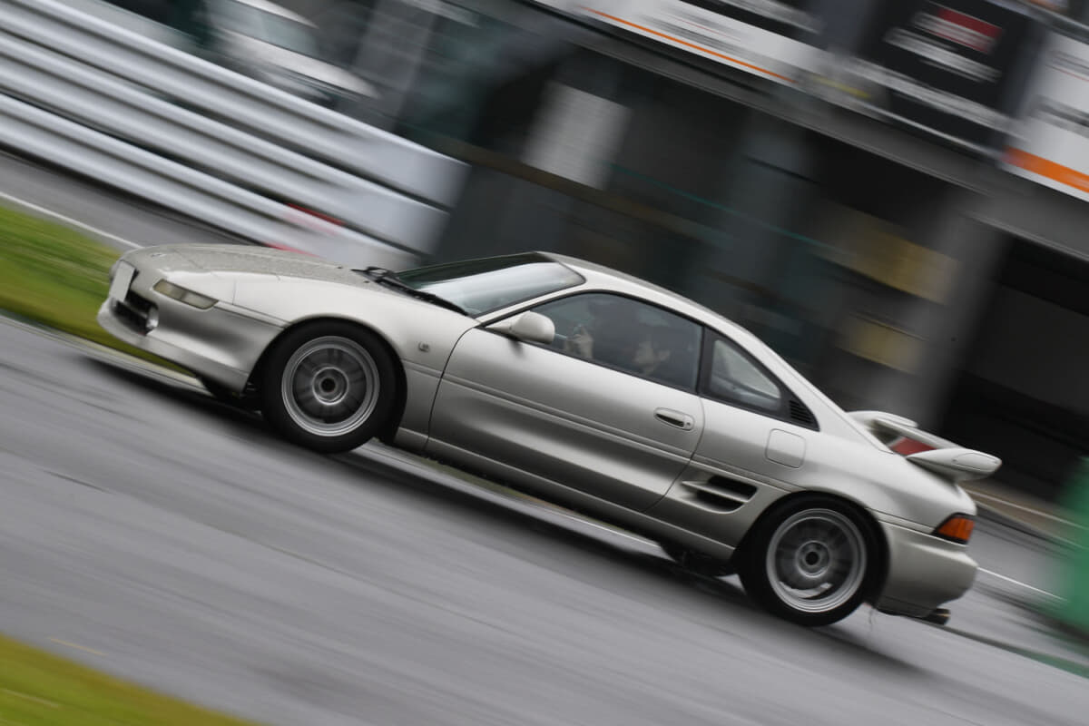 朝から本降りの雨で予定されていたチーム対抗・レンタルカート60分耐久レースは中止となりました。その代わり、普段から幸田サーキットを拠点にサーキット走行をしている有志が自慢の愛車で来場者を助手席に乗せて走る「サーキットタクシー」を実施。トライアルデモと並んでイベントの柱となりました。