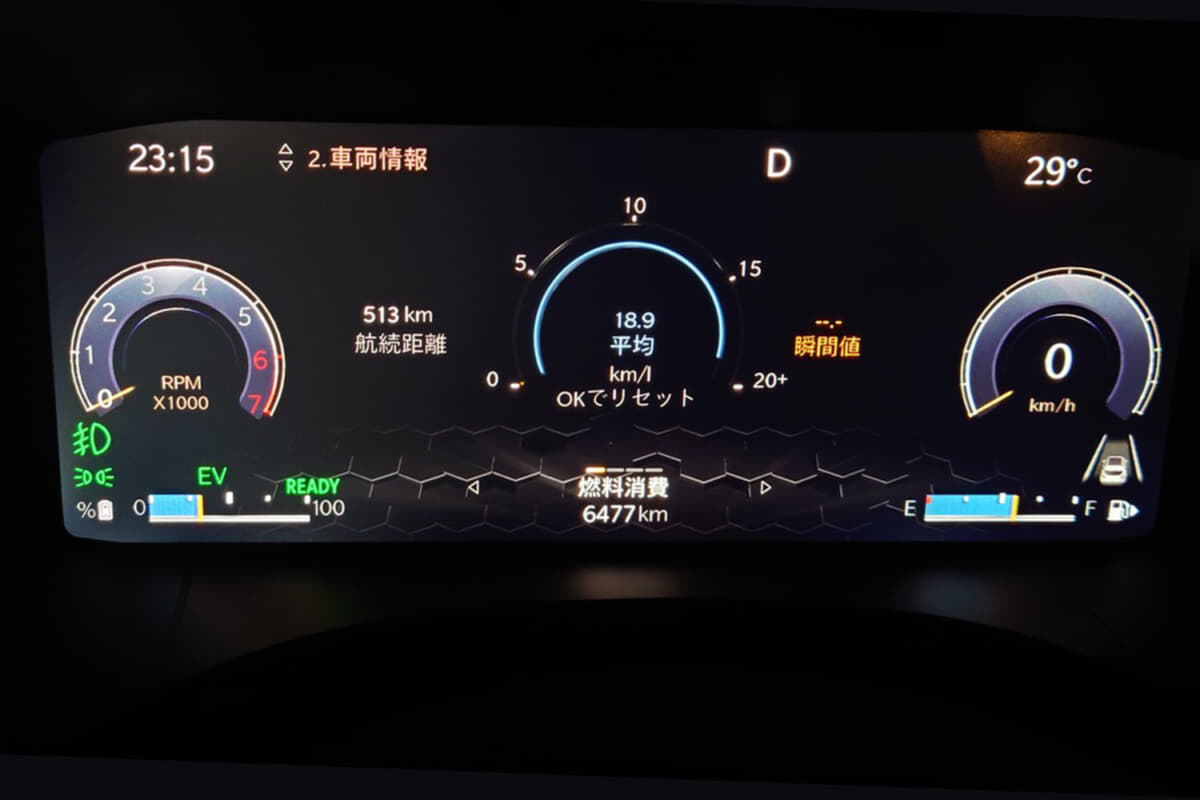 ちなみに、このパワートレーンは、2023年に日本に導入されたアルファロメオ・トナーレのマイルドハイブリッドモデルと基本は共通で、モーター出力、トルクは同一。しかしエンジンはトナーレ用が160psの高出力版に対して、レネゲードはジープとしての走行特性を重視してか、最高出力は131psでその発生回転数は抑えた設定となる。しかし車重はトナーレの1630kgに対してレネゲードは1470kg(試乗車はサンルーフ付きのため1500kg)と130~160kgも軽いので、動力性能面での差異は小さく、燃費では有利となりそうだ。