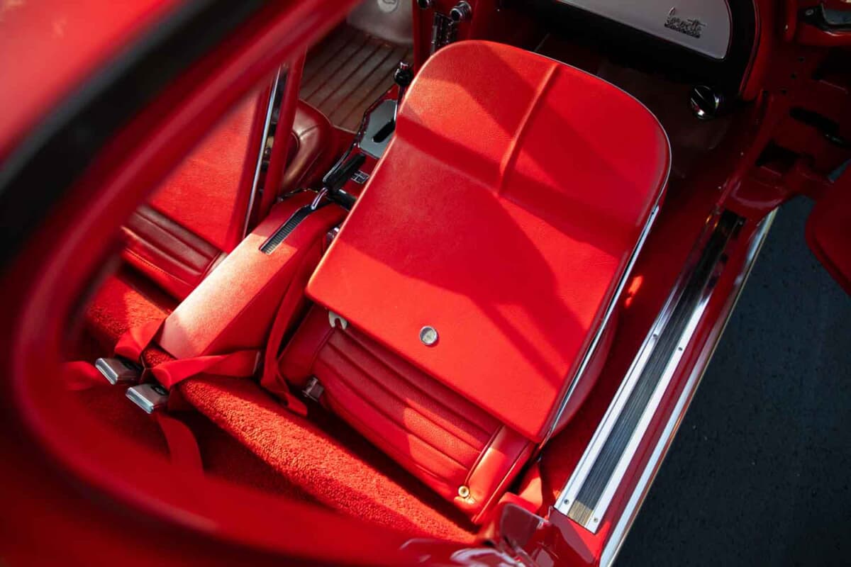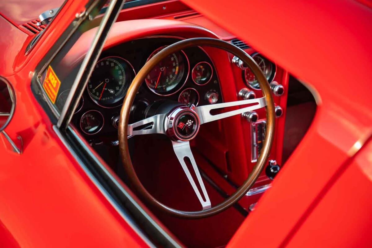 さらに、メーカー純正のエアコンディショナー、速度警告表示器、テレスコピック式のステアリングコラム、リアエンド出しの「オフロード」排気システム、AM/FMラジオ、当時としては珍しいショルダーハーネス、パワーステアリング、パワーブレーキ、パワーウィンドウも装備されていた、まさに夢のような1967年式C2だった。