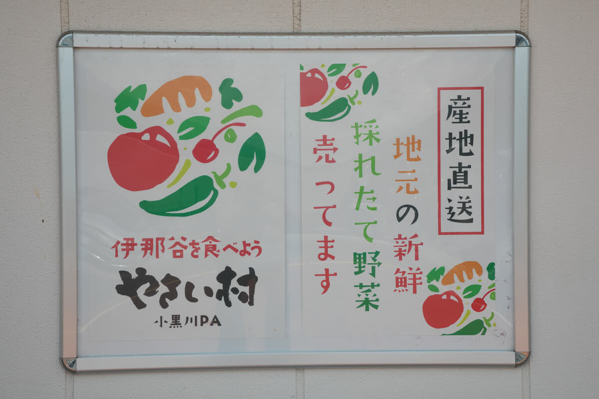 長野県伊那市にあり、南アルプス山脈を一望できるのが小黒川PA下りだ。このPAは、地元で収穫された野菜が持ち込まれ、季節に応じた新鮮な野菜が販売されている「やさい村」を展開。取材した7月中旬はお昼前でトウモロコシなどは売り切れとなっていた。