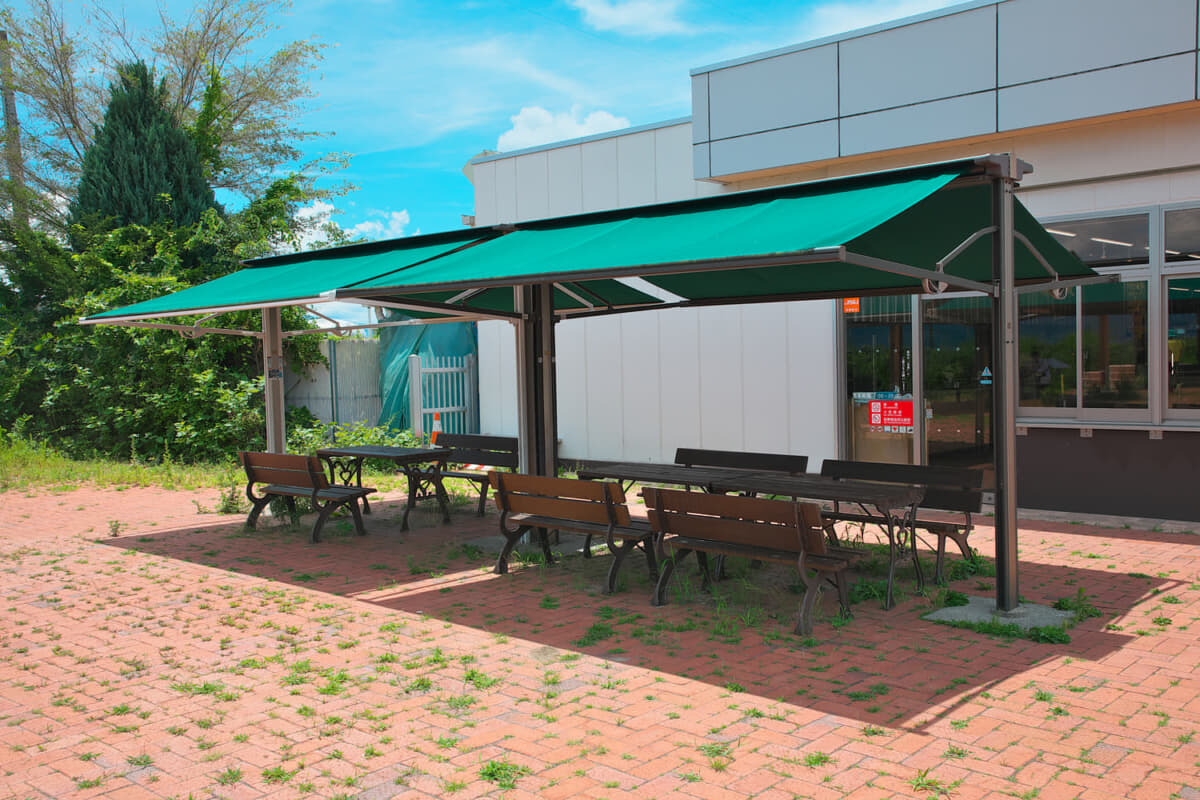 お昼前という時間帯にも関わらず、次々と職業ドライバーが来店する。この白樺亭ではスタンプサービスも行っているのでリピーターが多いということだろう。店舗の外には日よけの付いたテラス席も用意され、敷地内には遠くに広がる南アルプス山脈と一緒に記念写真が撮影できるフレームが設置されており、旅行の途中に立ち寄りたいスポットだ。