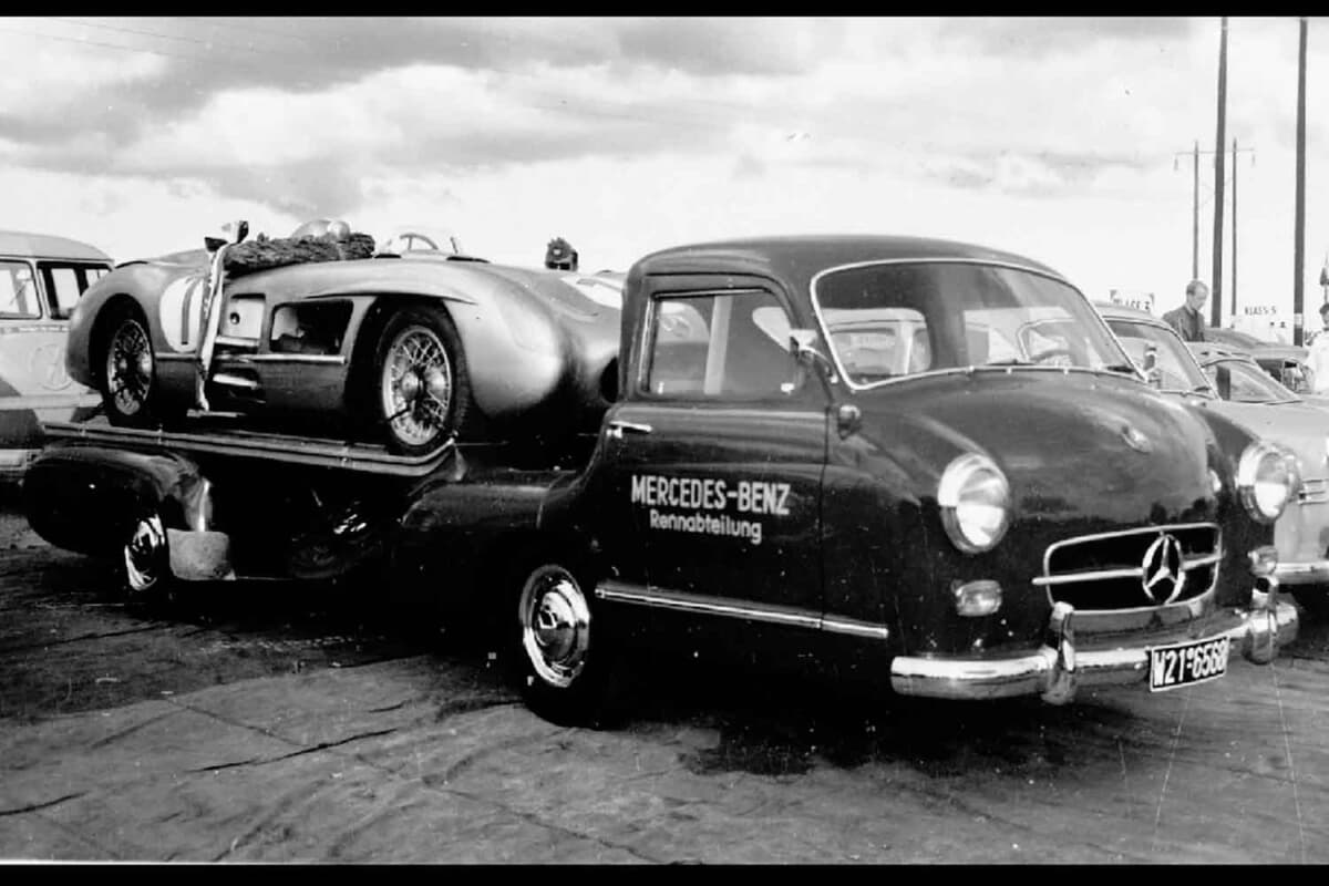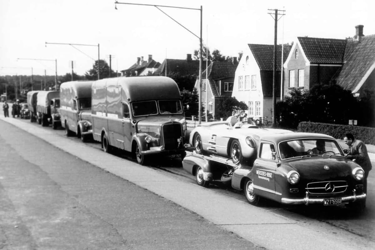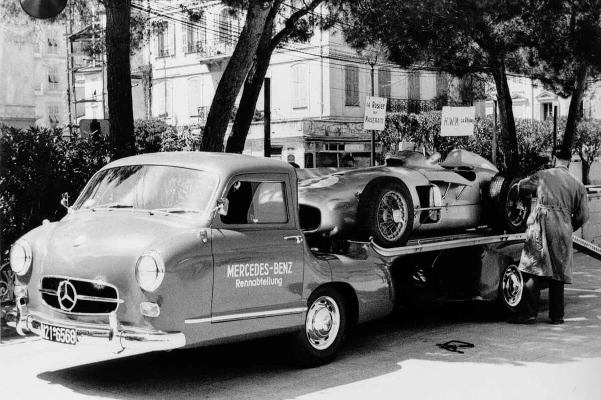 1952年、ダイムラー・ベンツ取締役会は2年後の1954年にGPレースに復帰すると決定した。1952年にすでに大成功を納めた同社のレーシング部門は社内でW196と命名されたGPカーの計画に着手。これと並行して、サーキットで整備や修理を行うためのワークショップを装備し、レーシングカーを高速輸送するためのトラックを製造することが不可欠となった。