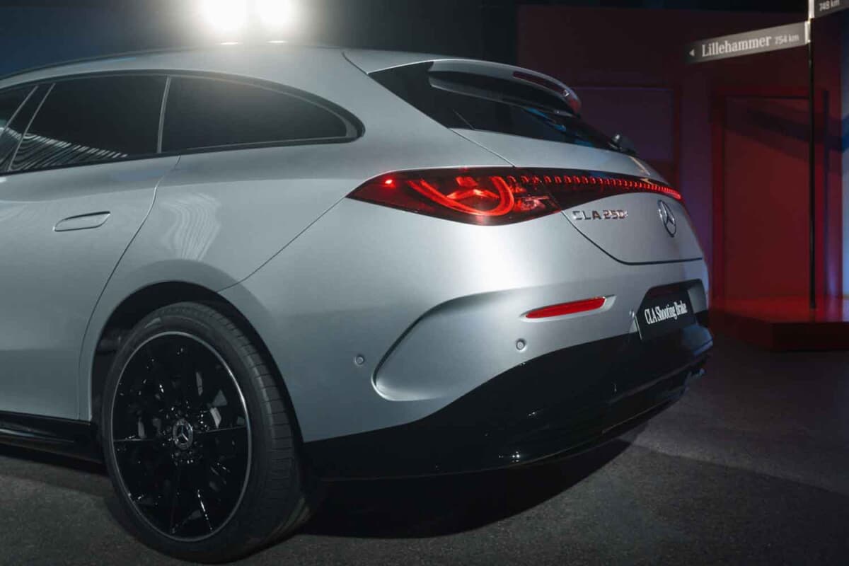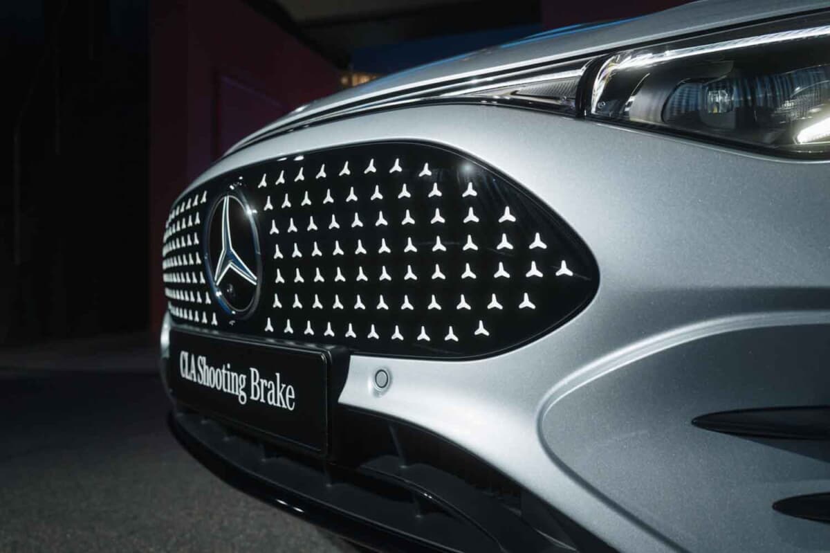 外観はCLAクーペとBピラーまで共通するシャープなプロポーションが採用されており、シャークノーズのフロントグリルには142個のLEDで輝く星型ライトが内蔵されている。これにより、夜間走行時の視認性が向上すると同時に、新型CLAシリーズ共通のアイデンティティを強く印象付ける。また、リアコンビネーションランプも星形デザインで構成されており、前後を貫くライトストリップと相まって、視覚的に幅広く、未来的な印象を与える。