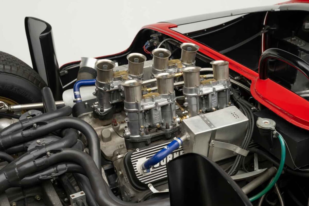 しかし、フォードがビッグブロック7Lの「NASCAR」用レーシングエンジンを軽量合金バージョンとして提供することを拒否したため、シェルビーはデ・トマソに解決策を求めた。そこで、アルゼンチン出身のエンジニア兼経営者であるデ・トマソは、フォード・スモールブロック289(4.7L)エンジンを7Lまでスケールアップすることを提案した。