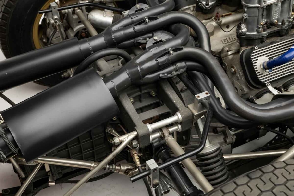 当初、標準の4.7LフォードV8エンジンと、デ・トマソが特別に製作したインテークマニホールドが搭載されたこのシャシーは、ボディ製作のためにカロッツェリア・ファントゥッツィの工場に送られ、そこでブロックは、モデナの優秀な職人たちと協力しながら作業を進めた。