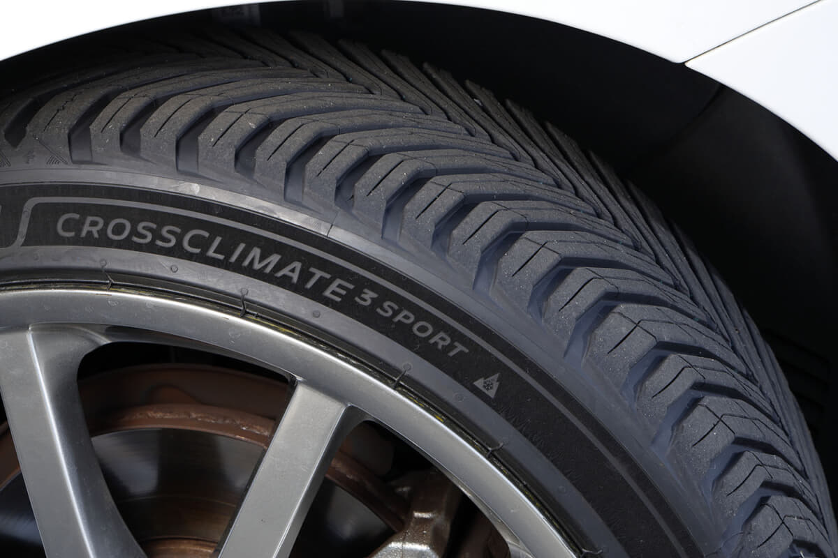 クロスクライメイトは2015年に欧州で発売され、日本国内では2019年から展開しているオールシーズンタイヤだ。スノーフレークマークも取得しているため、高速道路の冬用タイヤ規制もクリアできる。そして今回発表されたのが新世代クロスクライメイトである「クロスクライメイト3」と「クロスクライメイト3スポーツ」の2タイプ。