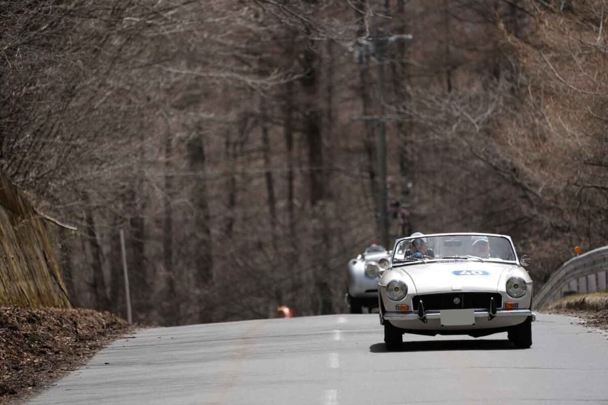 • MG「B」:「コッパディ小海」の名物といえば、標高差のあるワインディングコース。ジャガーを従え、木立の中を走り抜けるMG B