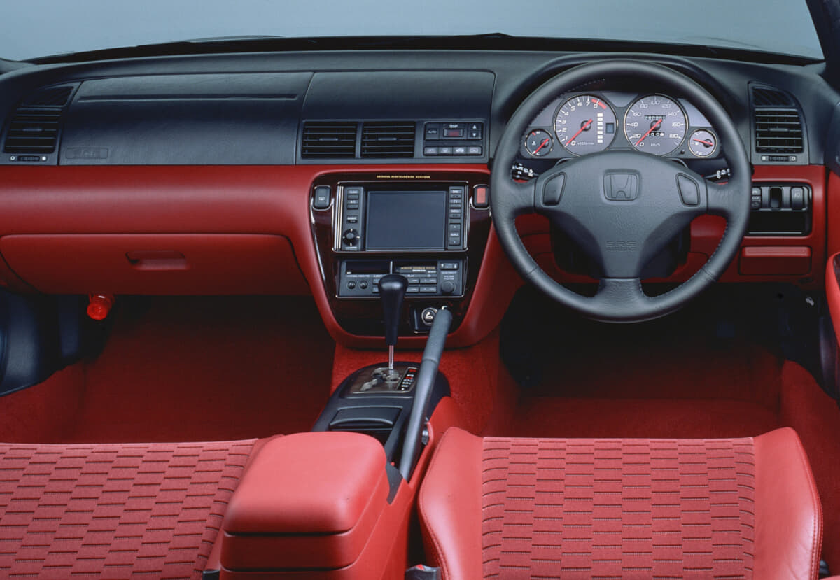 搭載されている2L直4は、パワーアップやレスポンス向上を実現させるため、エンジン本体を18度後傾させたレイアウトを採用している。さらに、4輪ダブルウィッシュボーン式サスペンションを採用したほか、注目は当時世界初の舵角応答タイプのホンダ4輪操舵システム(ホンダ4WS)の搭載だ。