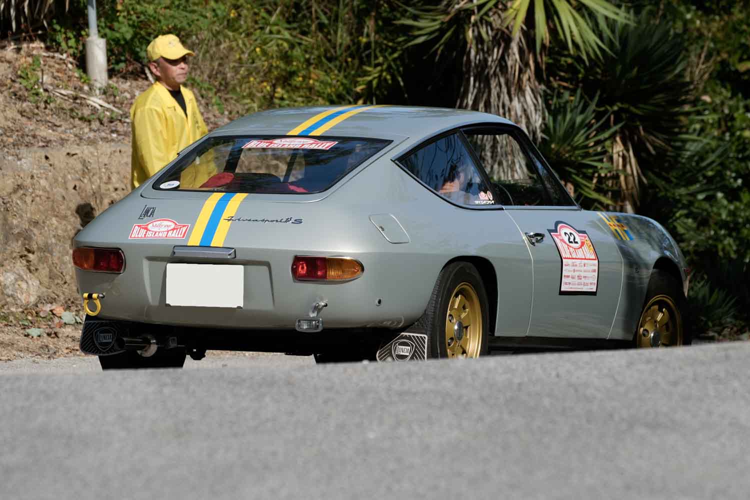 1972年式のランチア フルビア スポルト ザガートでミルキーウェイ・ブルーアイランドラリーを楽しむ塚本桂さん、恵里さん夫妻