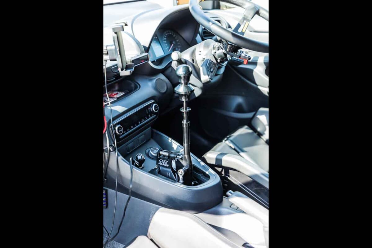 • トヨタ GRヤリス:ステアリングの脇まで伸びているのはドイツCAE製のウルトラシフター