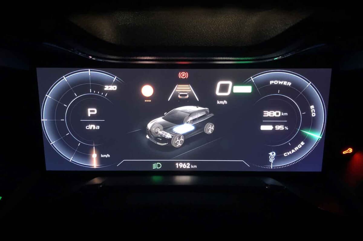 ちなみにエレットリカは電気を意味するイタリア語で、イブリダ(ハイブリッドの意味)同様、どちらかといえば情緒的ではない、いわば仕様名だ。このエレットリカは定格出力62kW、最高出力115kW(156ps)/4070〜7500rpm、最大トルク270Nm(27.5kgm)/500〜4060rpmのZK02モーターで前輪を駆動する。これに総電圧375V、総電力量54.06kWhの駆動用リチウムイオンバッテリーを搭載。