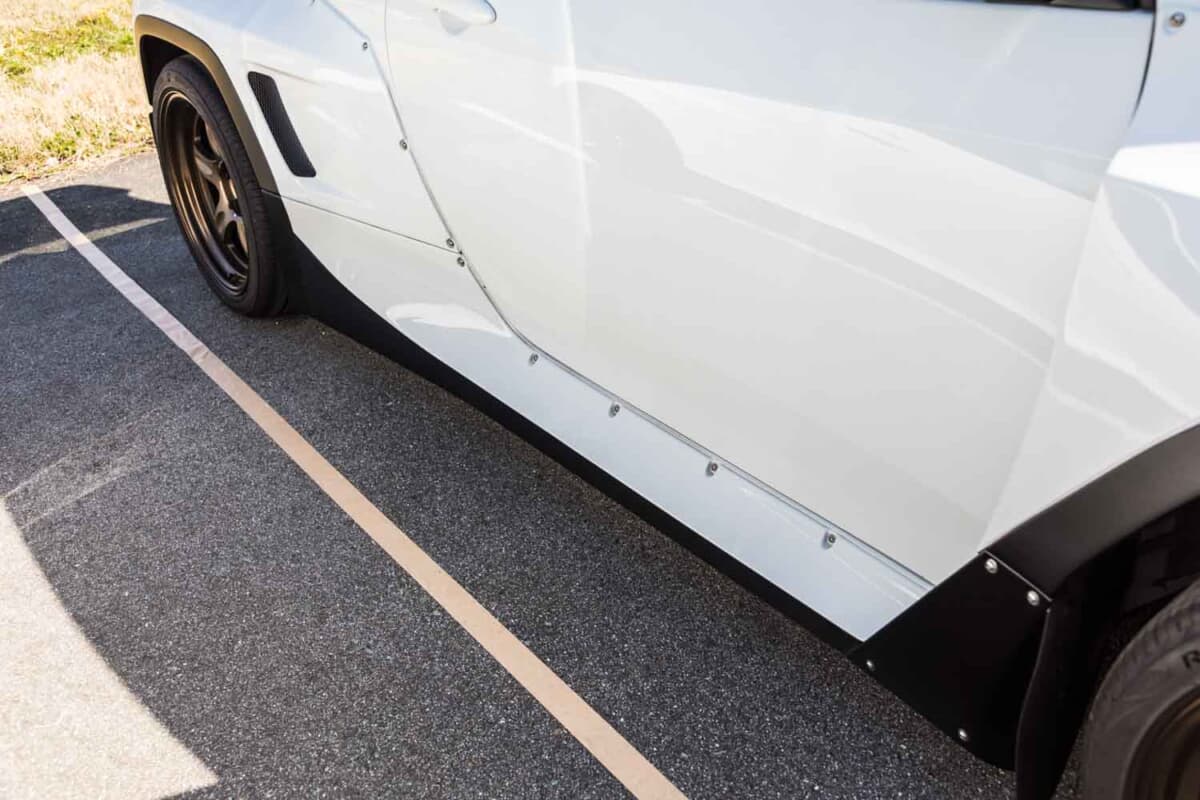 ミーティング会場の一角に3台分のワイドボディの専用スペースが用意されていました。最初にこのスペースに現れた“陽気さん”のワイドボディに続き、その隣のスペースにまったく異なるボディキットを装着したワイドボディ仕様が登場。しかもあらゆる部分に手を加えた車両のようです。早速オーナーの田中さんにお話を伺ってみました。