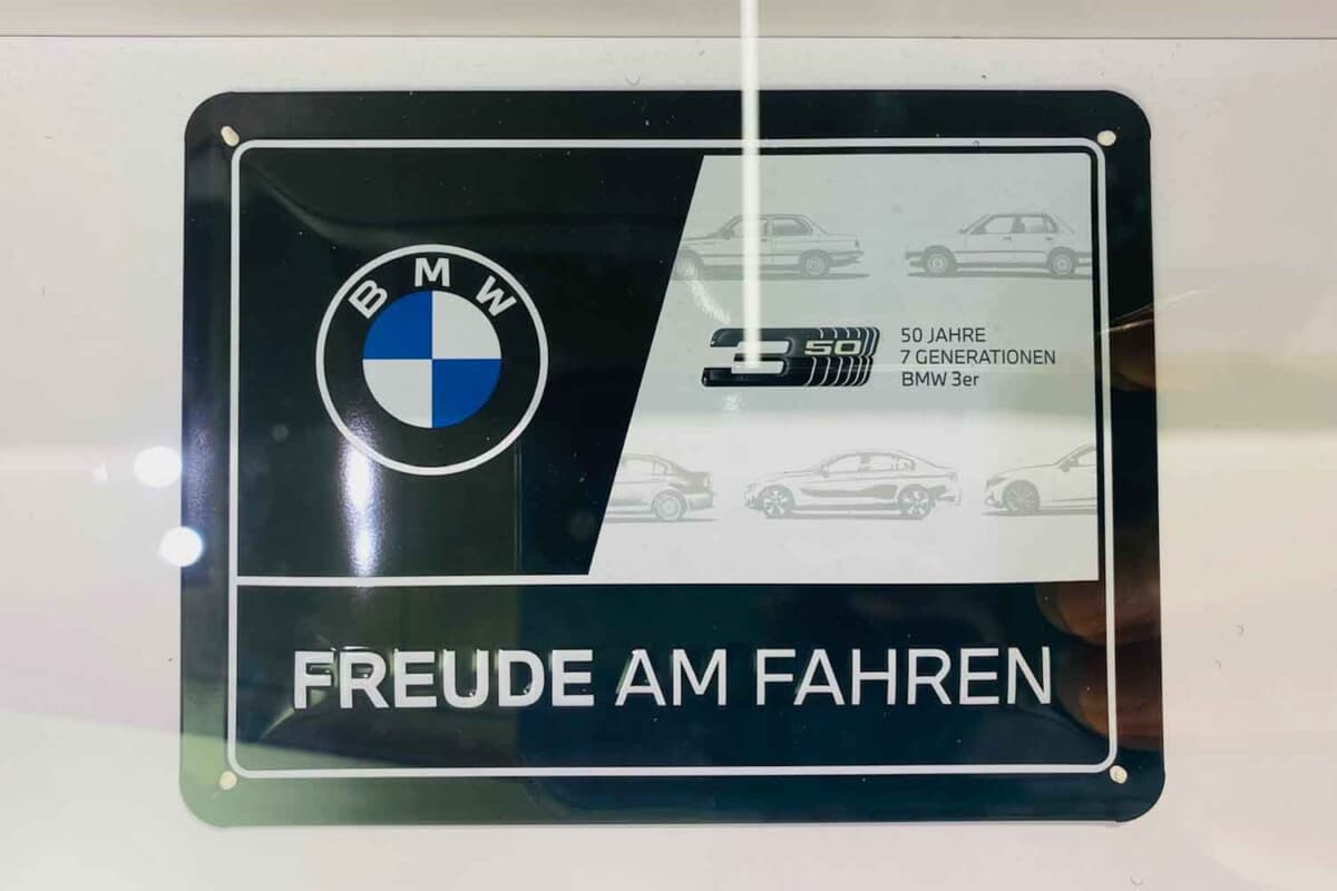BMW Weltのショップでは、この歴代3シリーズのウェアやグッズの販売も始まっていました。閉店間際でしたが、この3シリーズのグッズを手に取っている方がちらほら。私が気になったのは、歴代3シリーズが描かれているプレートとFreude am Fahren(フロイデ アム ファーレン:駆け抜ける歓び)のプレートです。先日BMWを定年退職した友人へのプレゼントにしようかしら。