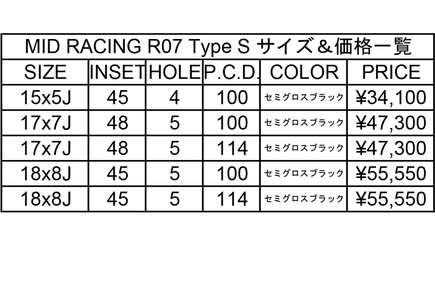 • MID RACING R50 Type Sサイズ表