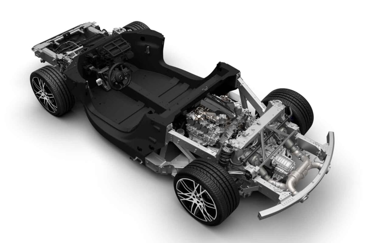 マセラティが誇る3L V6ツインターボ「ネットゥーノ」エンジンが搭載されており、最高出力は630ps/7500rpm、最大トルクは720Nm/3000rpmを発揮。重量はわずか1500kgで、パワーウェイトレシオは2.33kg/psと、クラス最高レベルを実現する。燃焼室にはF1由来のプレチャンバー燃焼システムとツインスパークを採用した、マセラティ独自の技術が導入されている。