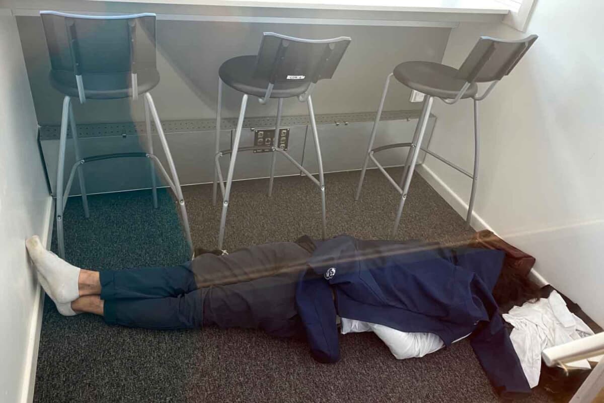 徹夜組が過ごしたメディアセンターでは、空いているTVコンパウンドのなかで仮眠をしている人や、寝床として使用したであろう形跡がありました。私も以前、ここで寝ようと試みたのですが、とてつもなく煩わしくて眠ることができませんでした。