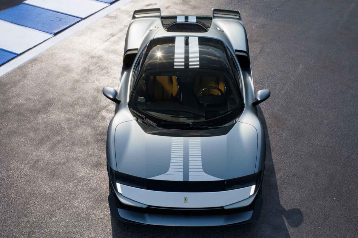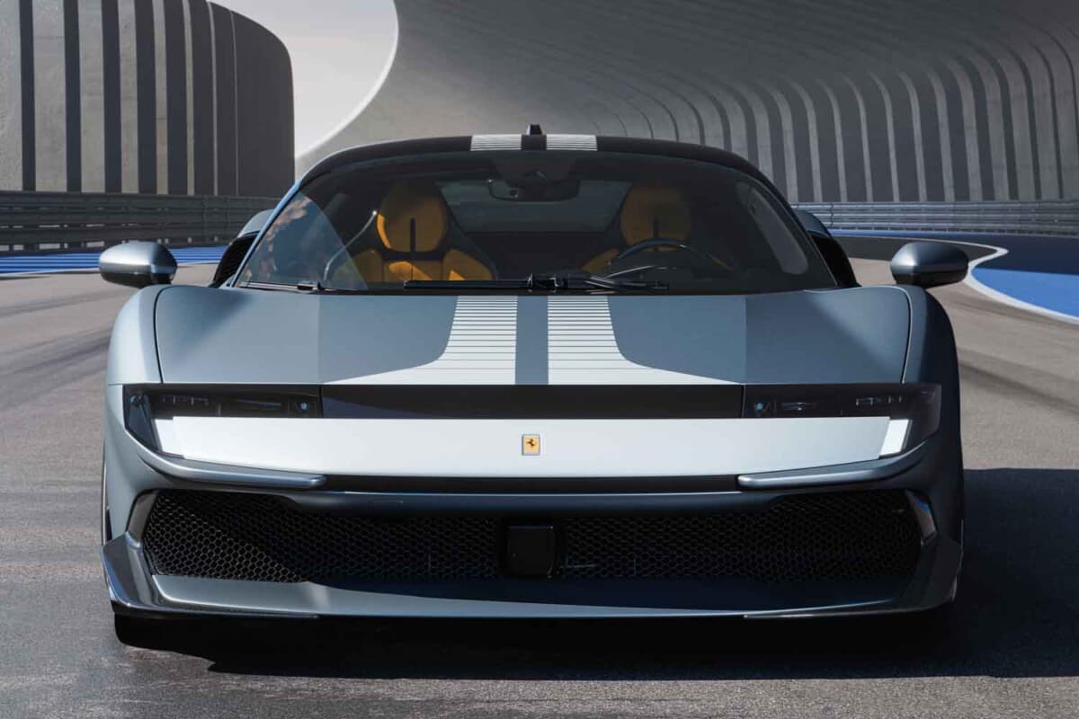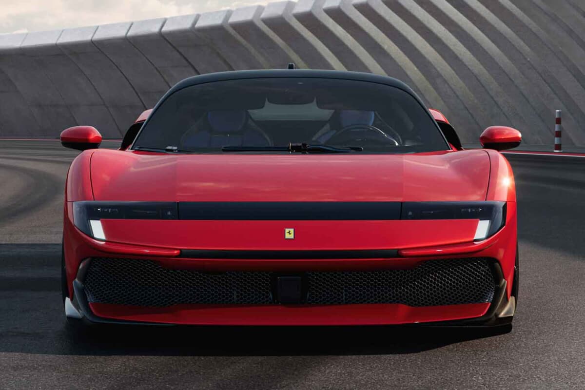 パフォーマンス面では、0-100km/h加速は2.5秒未満、0-200km/h6.35秒、最高速度は330km/hを超える。制動性能も優れ、100-0km/h28.5m200-0km/h108.0mで停止可能。フィオラノのラップタイムは117500を記録する。乾燥重量は1570kgで、パワーウェイトレシオは1.5kg/cv。徹底的な軽量化によって、SF90比で大幅な性能向上を果たしながら車重を据え置いた。