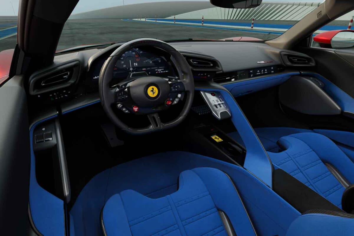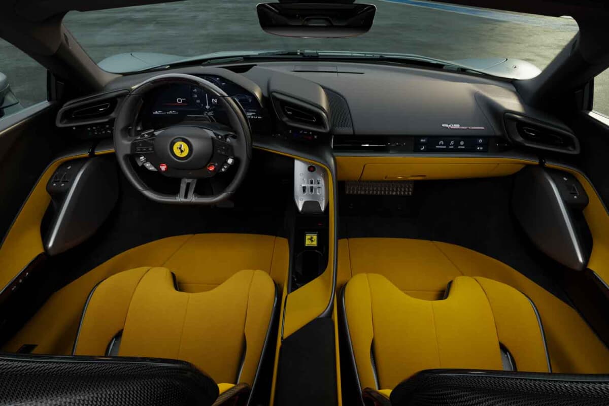 • フェラーリ849テスタロッサ:水平なダッシュボードを持つベルリネッタレイアウトのインテリア