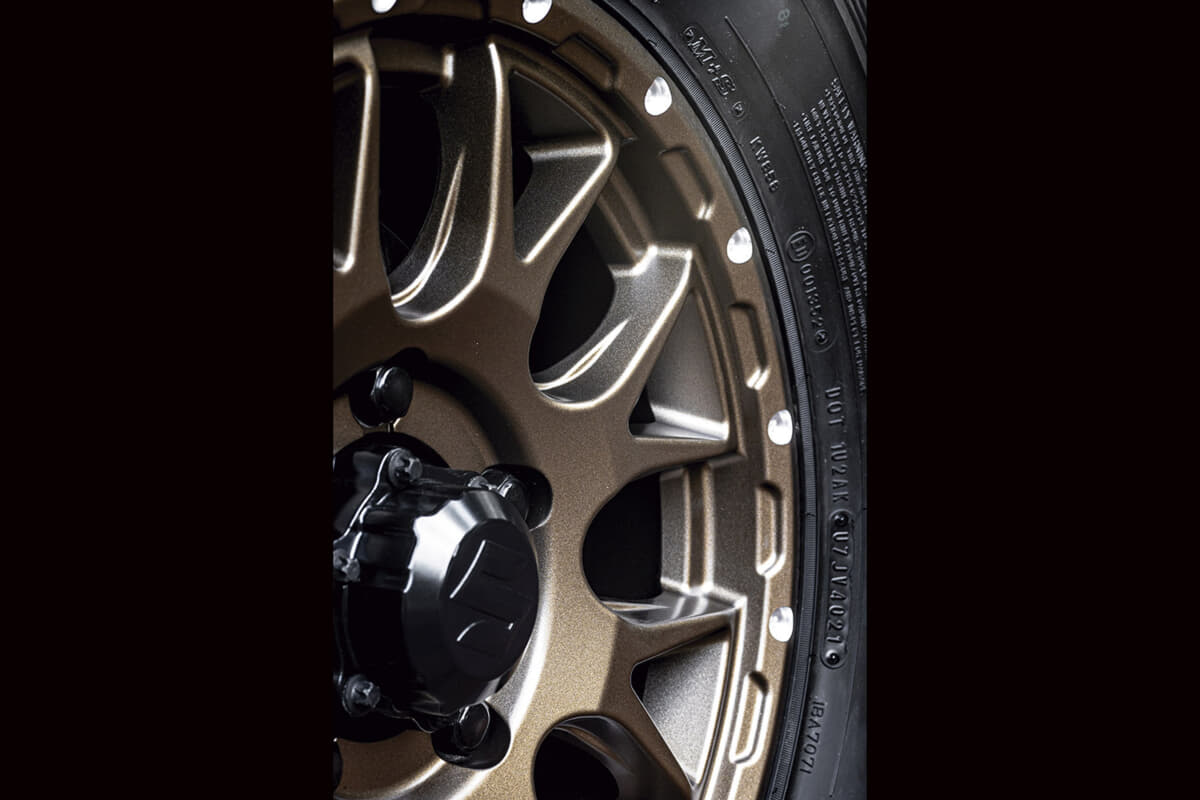 SUVをメインターゲットとするホイールブランドが「WEDS ADVENTURE(ウェッズアドベンチャー)」です。同ブランドのMUD VANCE(マッドヴァンス)シリーズは、アゲ系カスタムにハマるホイールを豊富に設定しています。なかでも8交点メッシュのMUD VANCE 08(マッドヴァンスゼロエイト)は、ゴツいリムの造形や渋い色合いが大人気になっています。