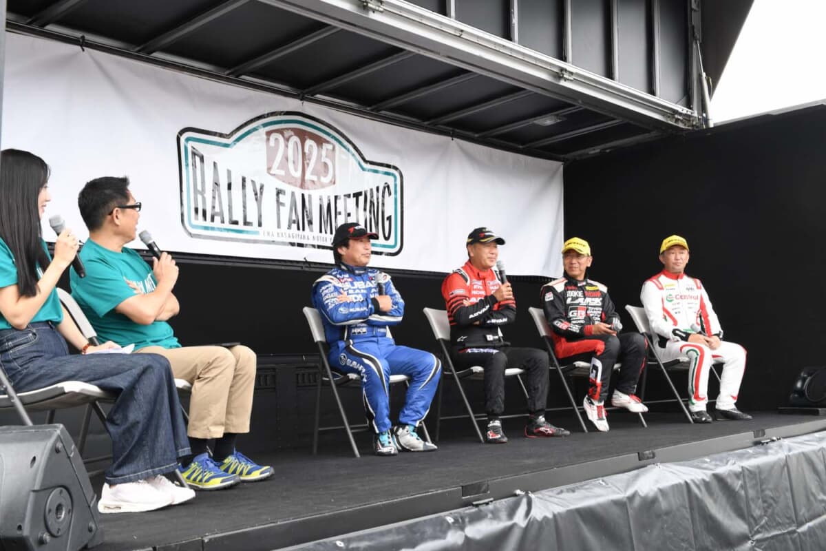 2025年9月23日(火・祝)、岐阜県の恵那笠置山モーターパークで「RALLY FAN MEETING 2025」が開催されました。トップラリーストの新井敏弘選手、勝田範彦選手、奴田原文雄選手、鎌田卓麻選手が集結し、抽選で選ばれたファンが実際にラリーに参戦する本番車両での同乗走行を体験しました。ラリージャパンのステージを舞台に、トークショーや撮影会、じゃんけん大会なども行われ、会場は1日中熱気に包まれまれていました。