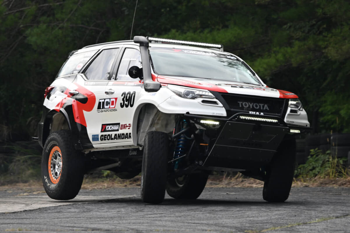 そして塙郁夫選手は、これから船積みしてメキシコに向かうというバハ1000に参戦するトヨタ フォーチュナーを持ち込んで、走りを披露した。