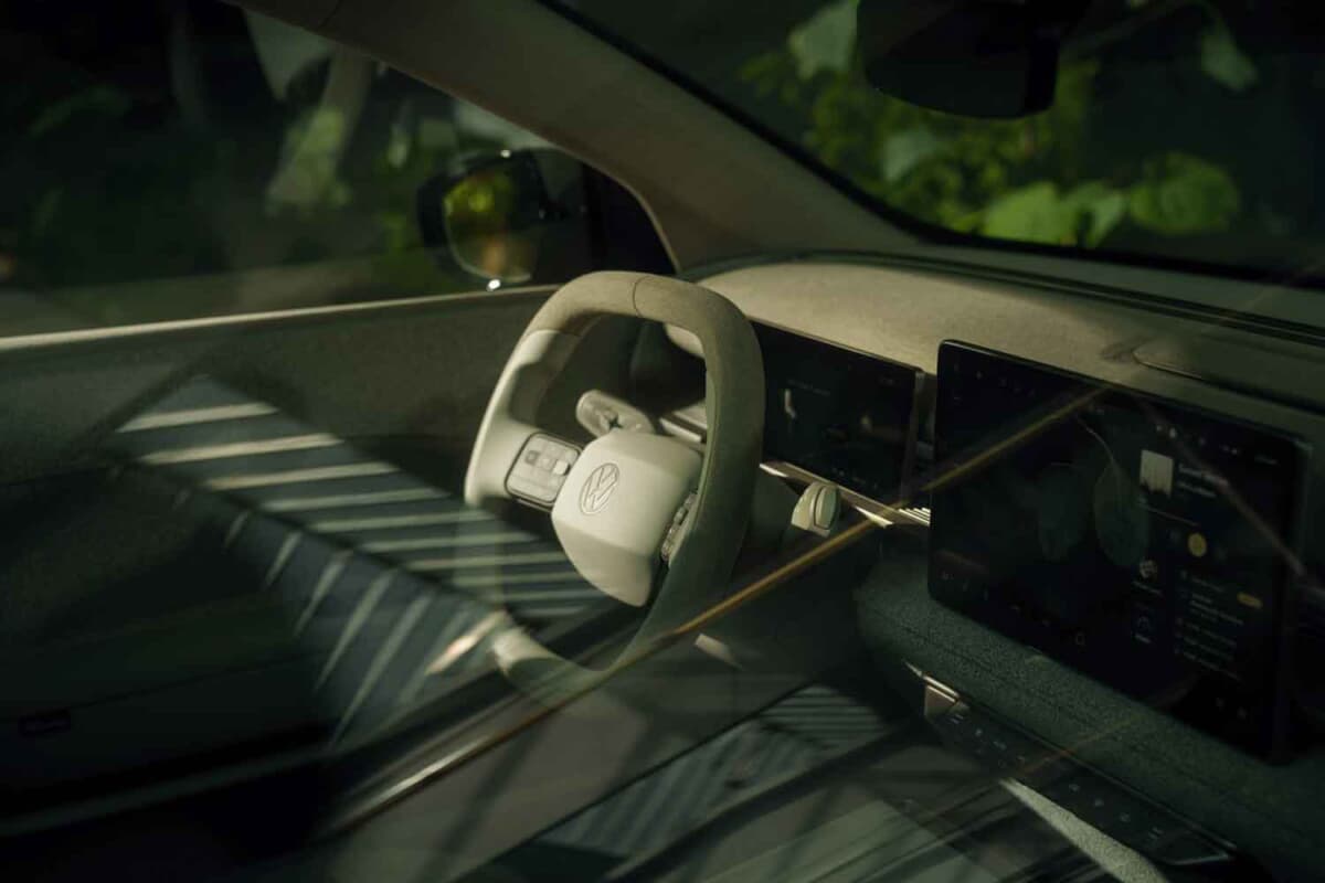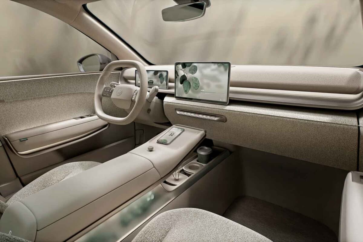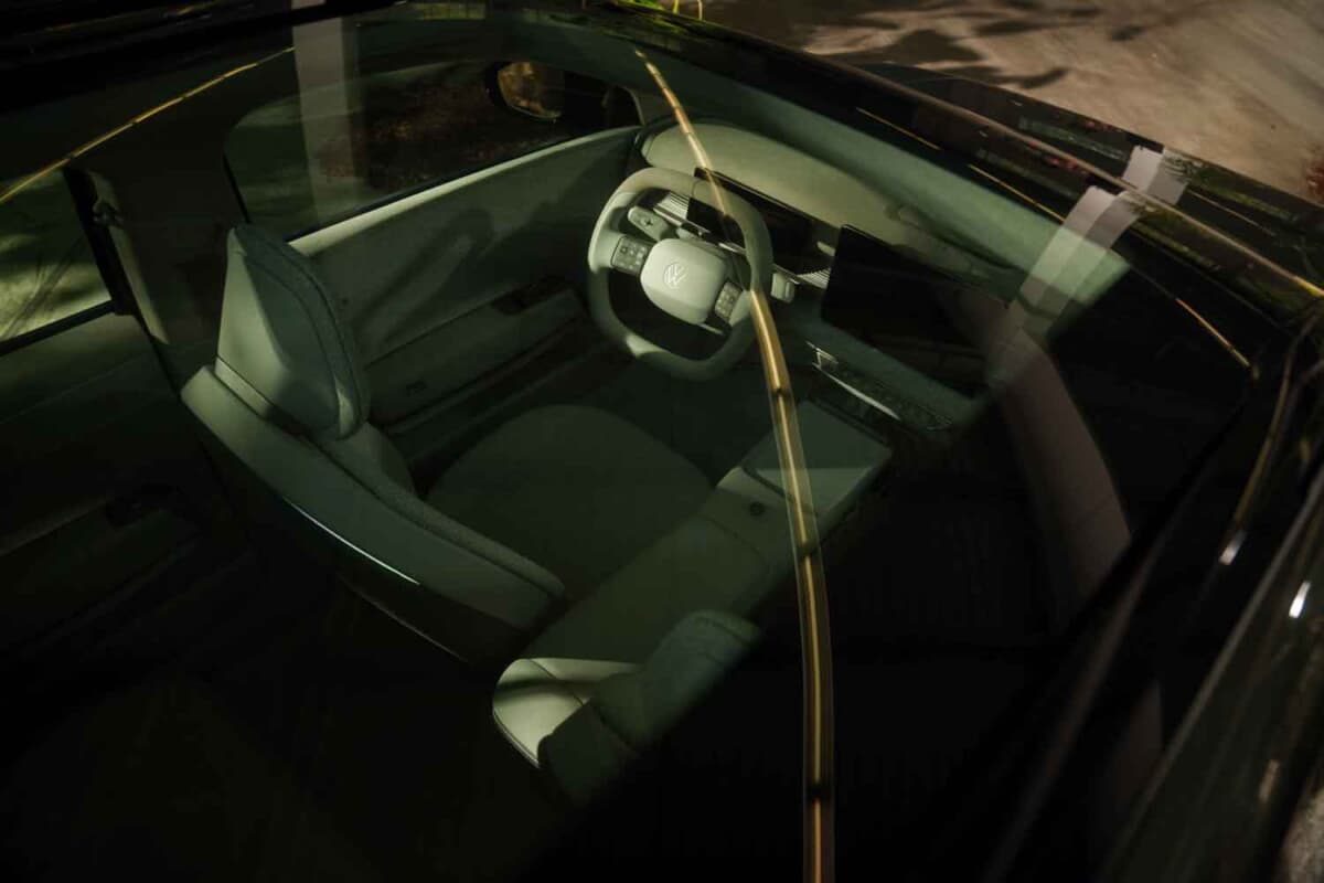 インテリアは単なる移動空間を超えた「心地よいオアシス」をコンセプトとし、明るいベージュトーンのバニラチャイを基調にした素材と色使いが温かみを演出。ラウンジのような快適性を追求し、光・音・空調を連動させるアトモスフィアモードを備えることで、状況に応じた雰囲気を楽しめる。また、浮遊感を持たせたセンターコンソールには本物の植物を配置し、自然と調和する心地よさを提供。シートはフルフラットが可能で、VWバスを思わせるリクライニングスペースを作り出せる点もユニークだ。