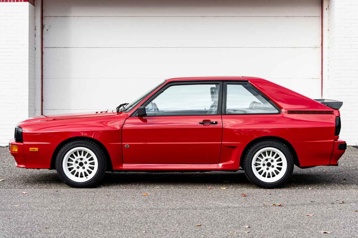 直線的なボディデザインは「クーペ」がベースだったものの、最高出力200psを発揮する2.1Lの直列5気筒ターボエンジンや、独立式のリアサスペンションの採用など、クワトロが意味するセンターデフ方式の4WDシステムのほかにも、アウディはさまざまな新技術をこのクルマで展開した。