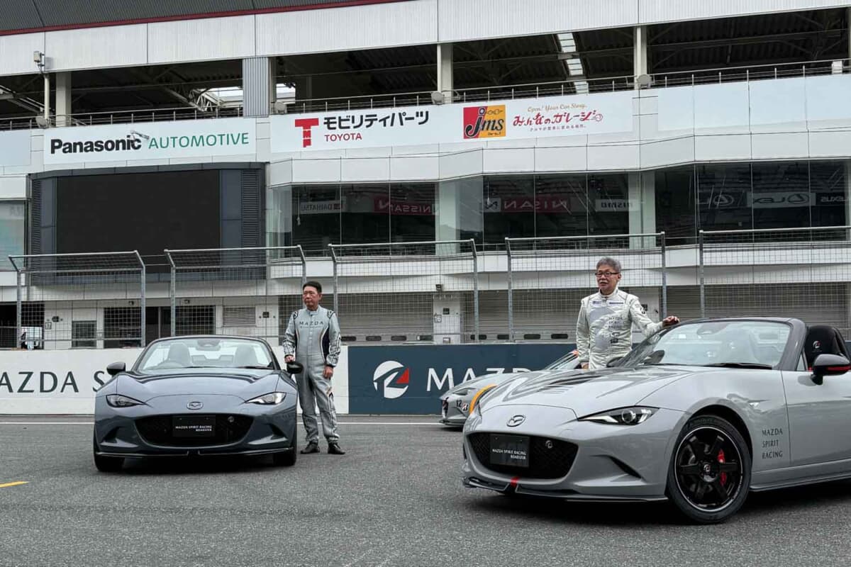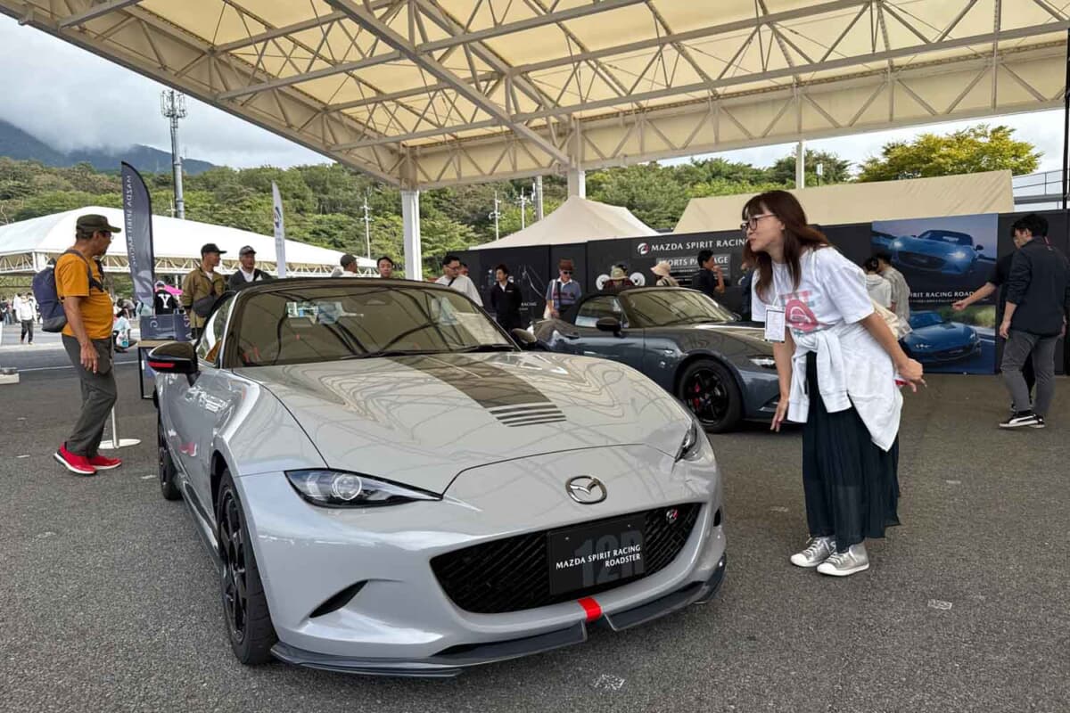 イベントは2025年10月4日(土)・5日(日)の2日間だったのだけど、私ったら、富士行きは前日の10月3日(金)から始まっていたの! というのも、翌日に正式発表となるマツダのレーシングDNAを注入した限定車「MAZDA SPIRIT RACING ROADSTER」と「MAZDA SPIRIT RACING ROADSTER 12R」のプレス向け事前説明会と撮影会が行われたからなの。メディア関係者が多く訪れる金曜日に、ひと足お先にスクープさせていただいたわ。