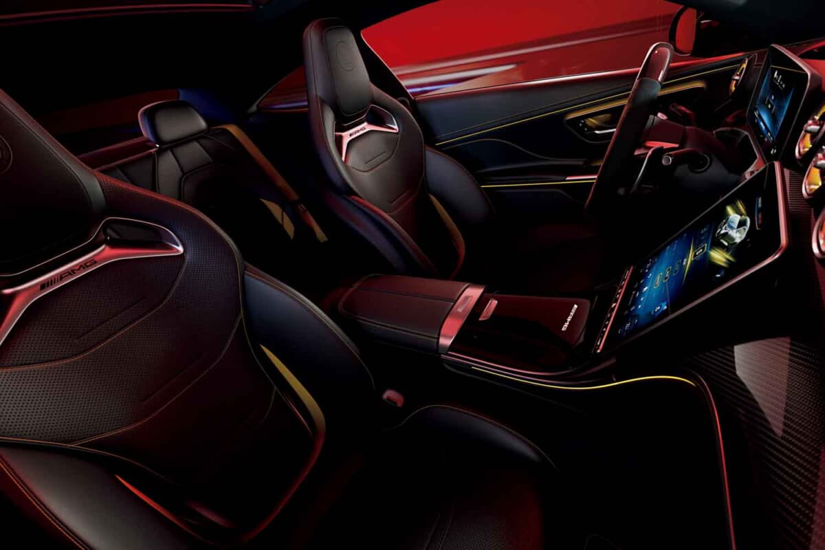 インテリアにおいても特別な装備が際立つ。ブラックを基調にイエローアクセントを効かせた空間に仕上げられ、イエローシートベルトやイエローステッチ入りのAMGナッパレザーシートを標準装備。