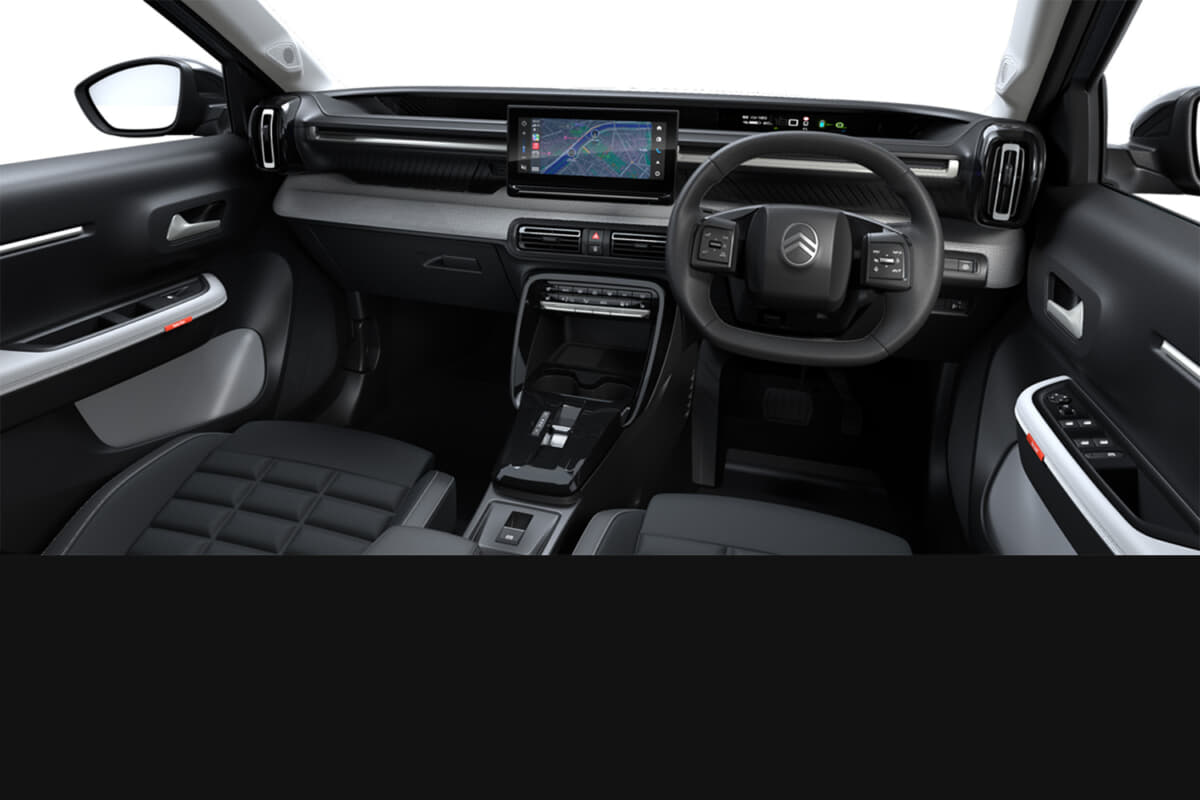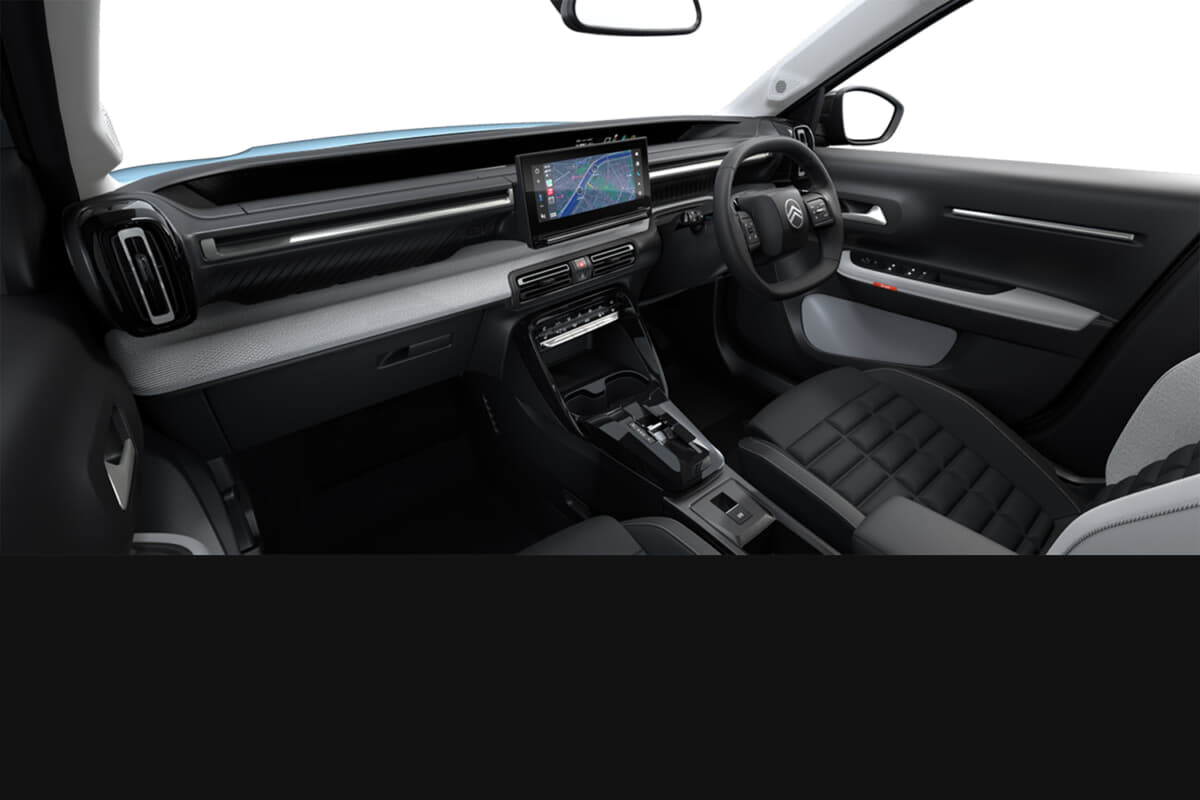 インテリアは「快適性と遊び心の融合」をテーマに設計され、フラットでワイドなインストルメントパネルにより視界を確保し、必要な情報を最小限の視線移動で確認できる。ファブリックと合成皮革を組み合わせたアドバンストコンフォートシートは、長時間のドライブでも疲れにくく、シトロエンならではの魔法の絨毯のような乗り心地を体現している。