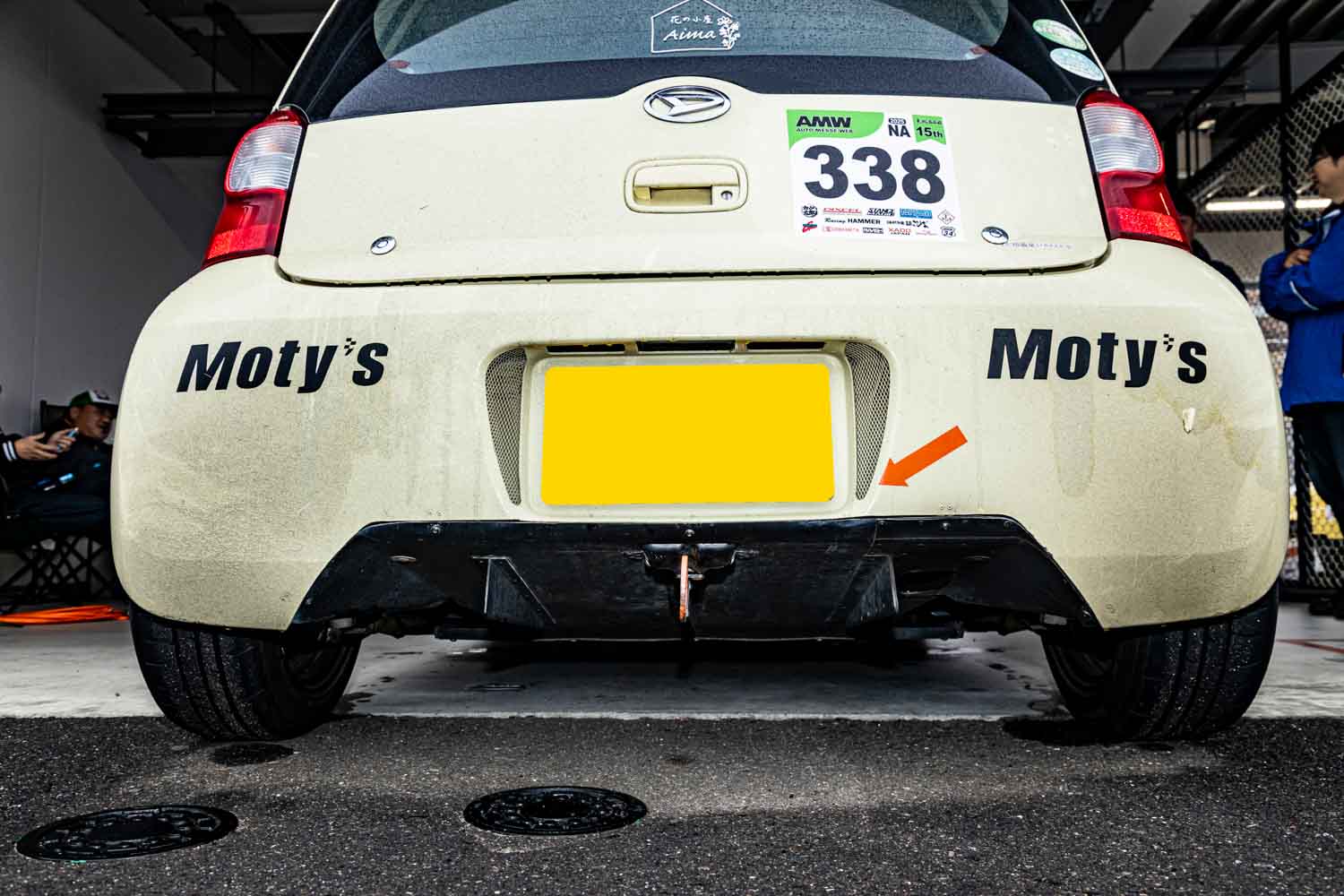 • ダイハツ エッセ:リアのディフューザーはガレージ・カリノのワンオフである。直線の長いSUGOではとくに効果大だ