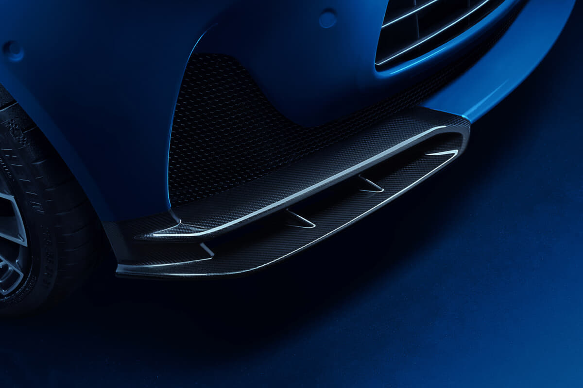 エクステリアデザインも一新され、より低く、幅広い印象を与える新フロントスプリッターや、熱排出を助けるボンネットルーバーを新たに採用。グロスブラックまたはカーボンファイバー仕上げを選ぶことができる。また、側面にはグロスブラックのシルを追加し、フェンダー下部にレッドのガラスエナメルを施した鍛造Sバッジを配置。リアは固定式スポイラーと新リアディフューザーを組み合わせ、ダウンフォースを確保しつつ迫力あるクアッドエキゾーストを収めた。ステンレス製スポーツエキゾーストに加え、オプションのチタニウム製システムでは11.7kg軽量化し、音量を1.5dB高めている。