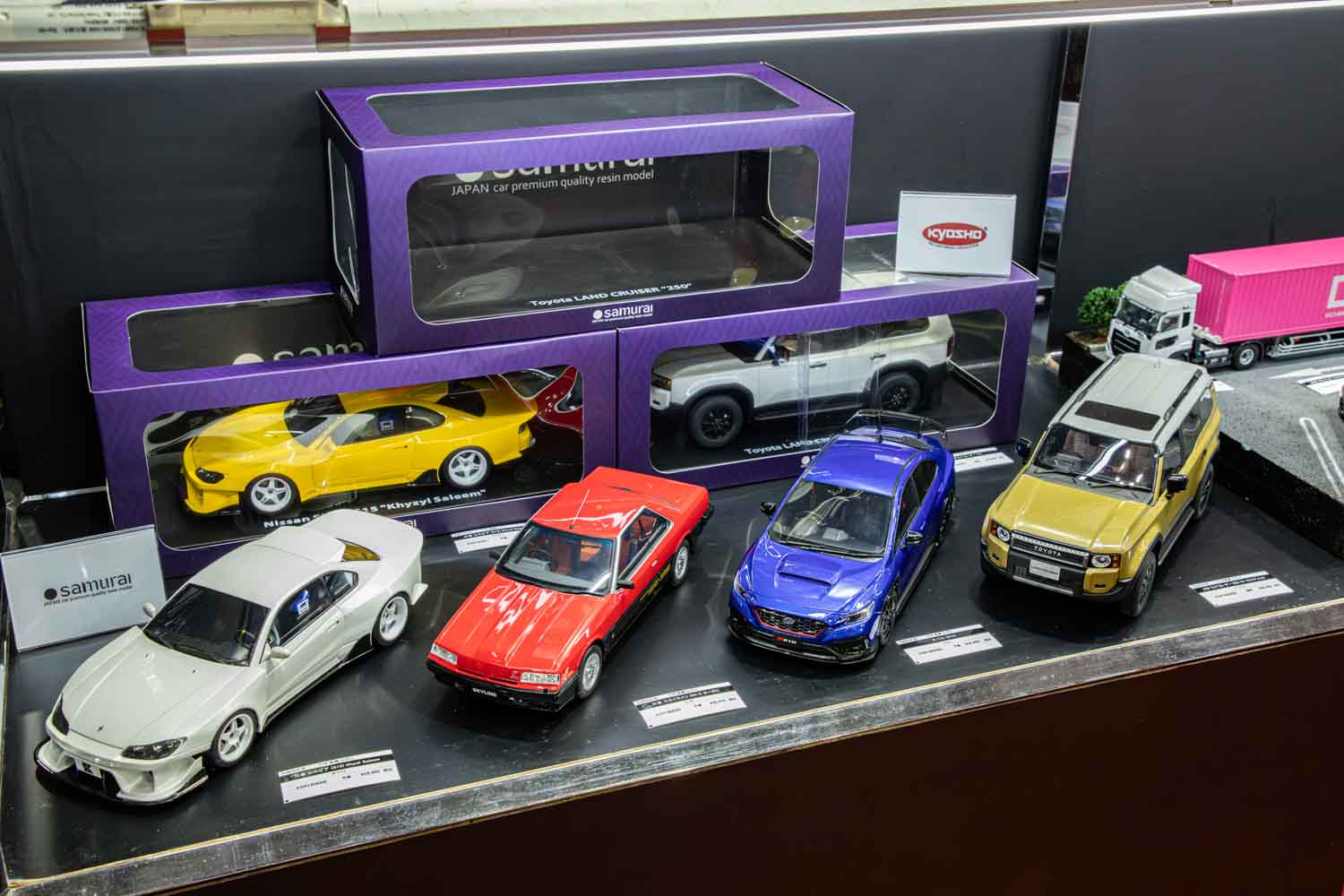 日本車を中心に展開するレジン製シリーズ「samurai」では、初公開のスバル「STI S210」が登場。STI専用のドライカーボンリアスポイラーやアンダースポイラーまで、緻密に再現されている。