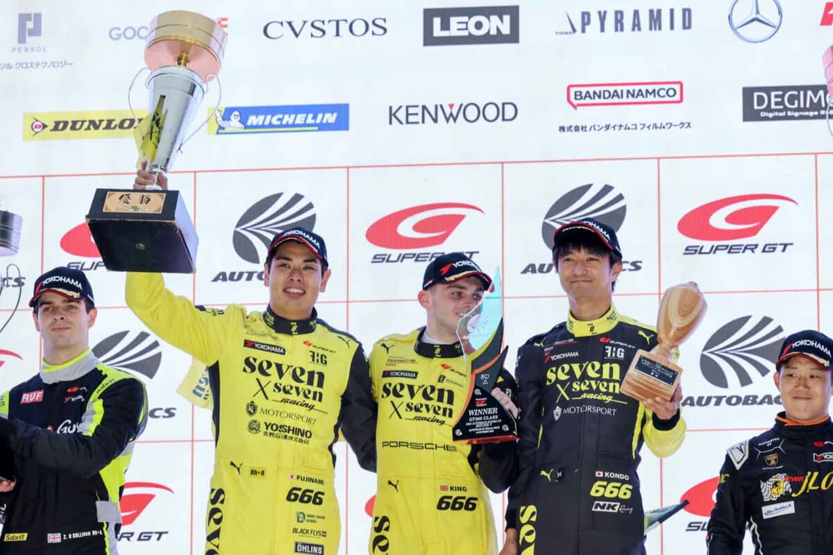 スーパーGT第7戦の決勝レースが10月19日、大分県のオートポリスで行われました。3時間の長丁場のレースでGT300クラスを制したのは666号車seven × seven PORSCHE GT3R(ハリー・キング選手/藤波清斗選手/近藤 翼選手)でした。