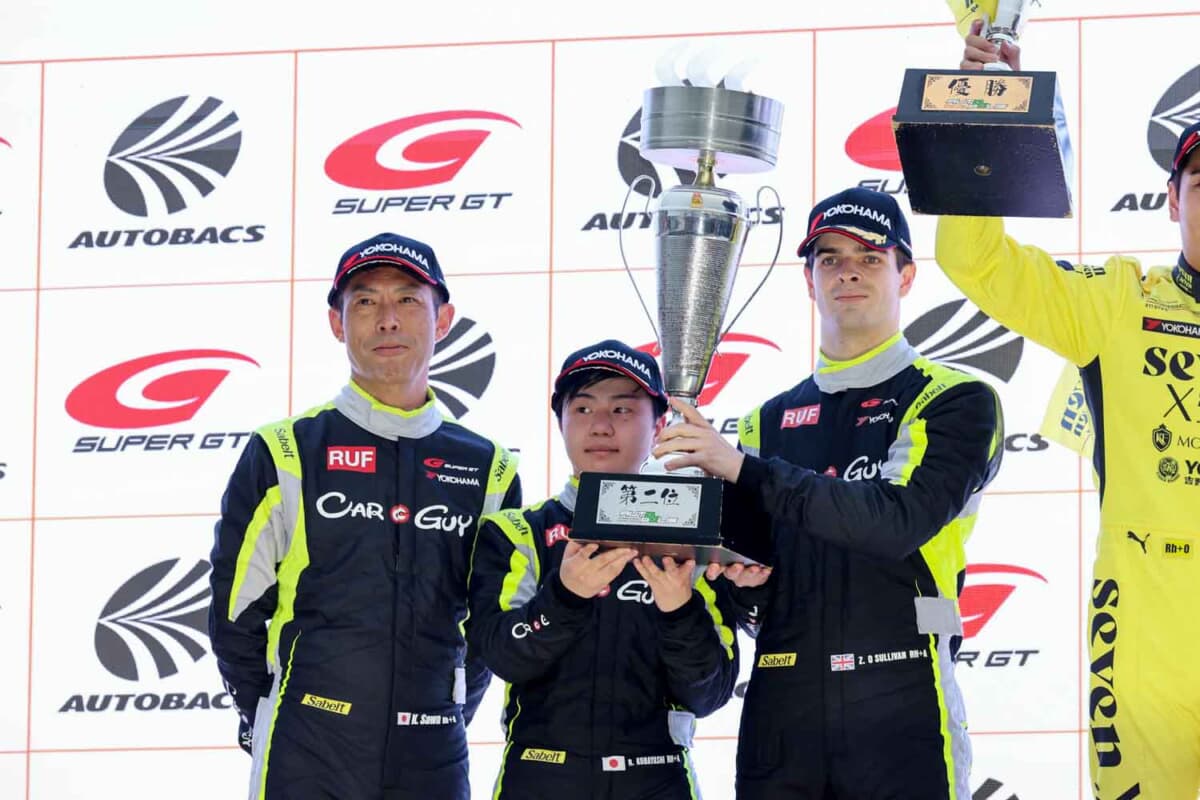 まず0号車VENTENYはFCY中の減速違反でドライブスルーペナルティを受け、7号車CARGUYがトップに浮上した。その後、黄旗区間で26号車ANEST IWATA RC F GT3を追い抜いてしまったCARGUYとVENTENYが共にドライブスルーを受けることになった。CARGUYはそれでも首位の座を守ったが、VENTENYは3番手に落ち、2番手は666号車seven × seven PORSCHE GT3Rとなった。