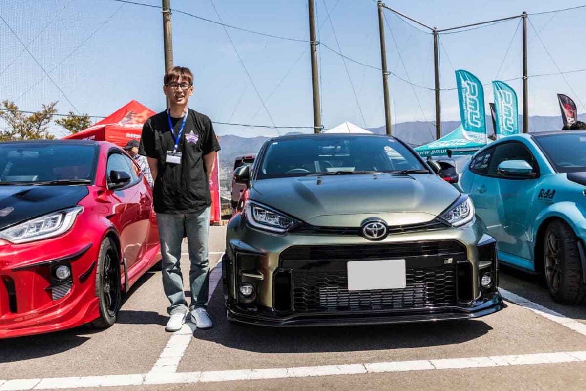 「このクルマは2021年式のRZハイパフォーマンスパッケージで、1年落ちの中古車として購入しました。これまでスバル車に乗り継いできて、GRヤリスの前はスバルVAB型WRXに乗っていました。スポーツ4WDでマニュアル車が好きなので、たまたま近くの中古車屋にあったこのGRヤリスを選びました。実際に乗ってみると、このクルマも運転が楽しいですね」