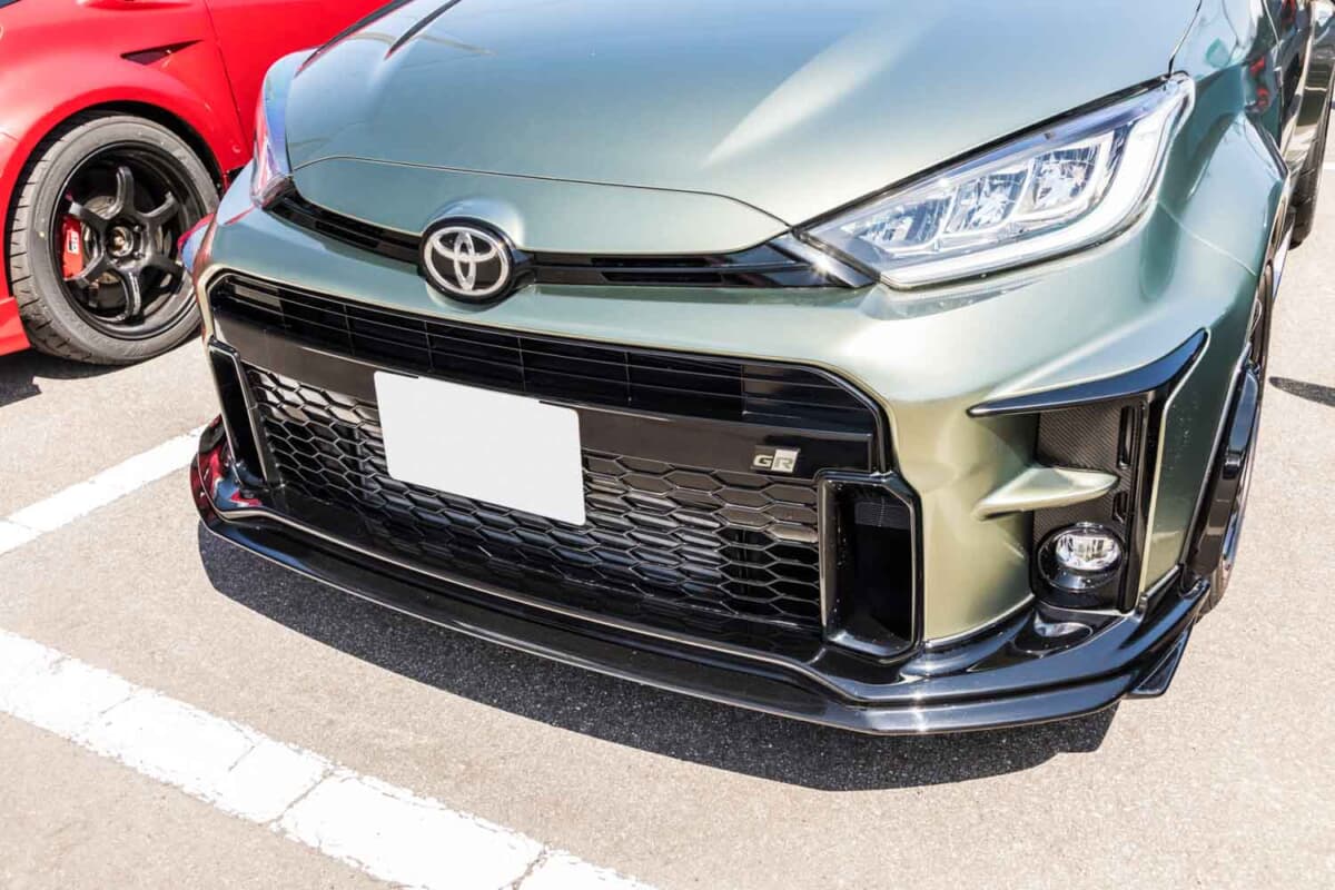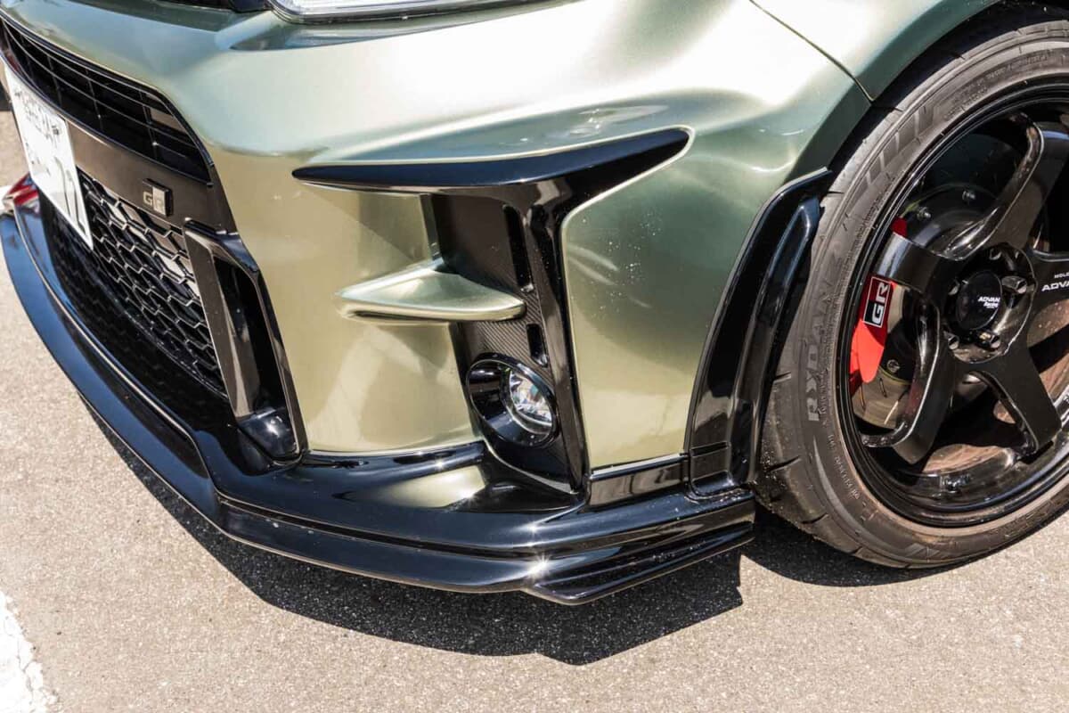 そう言われてバッジを見てみると、通常のGRロゴはブラック/レッドの地に白い文字となるが、このクルマに備わるバッジは全てブラック/ホワイトの地にラッピングカラーと同じグリーンの文字となっている。細かな部分だが、カラーコーディネイトすることで、このクルマの完成度はより高いものになっているのだ。