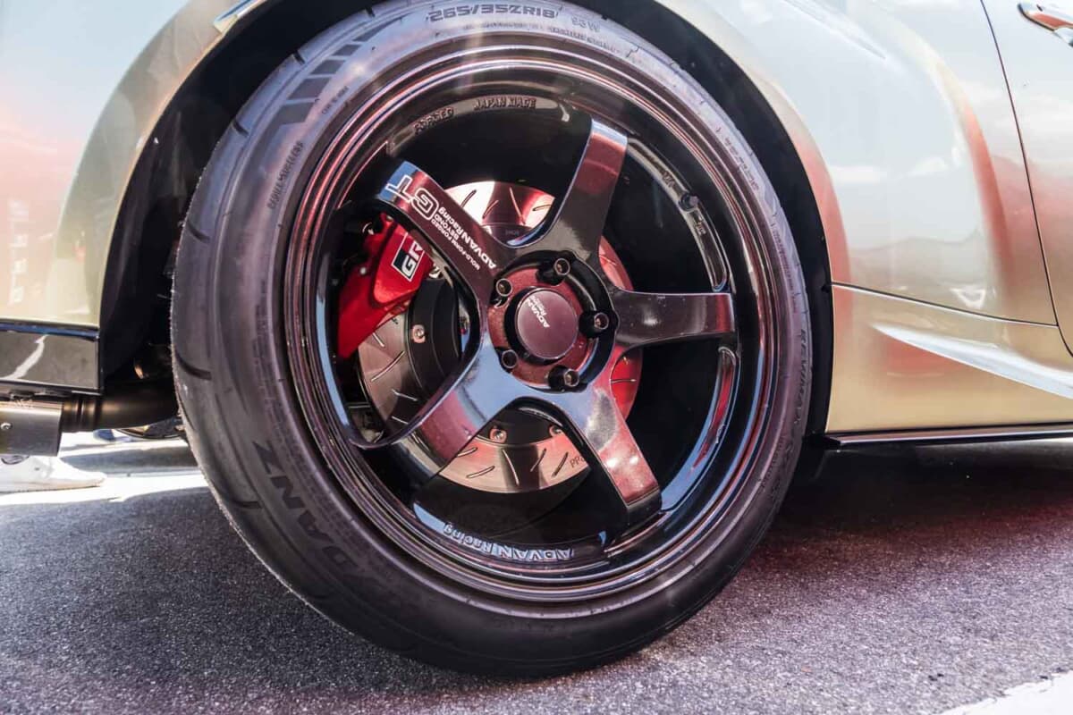 足まわりはAPEXの車高調整式サスペンション(車高調)をチョイスし、同じくAPEXのタワーバーを装着している。ホイールはADVAN GT BEYONDで、18×9.5J+38というサイズをチョイスした。これに265/35R18という純正よりかなり幅の広いタイヤを組み合わせている。