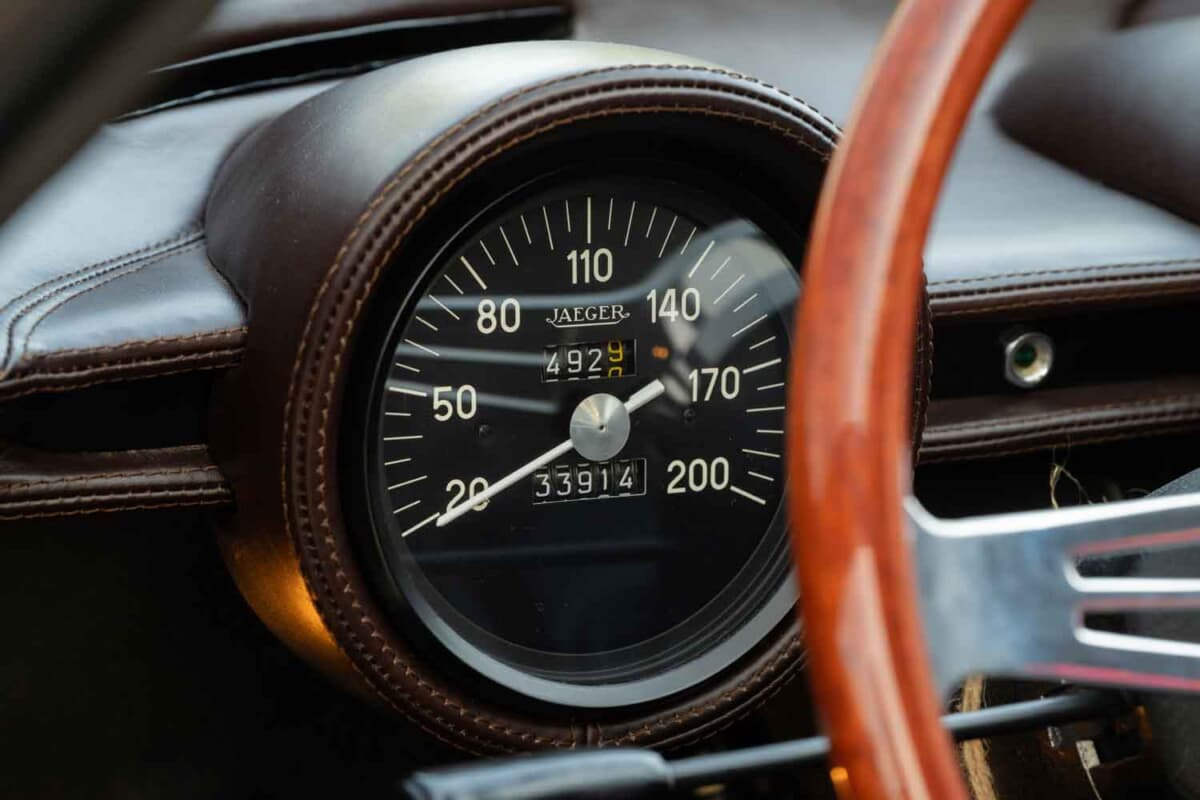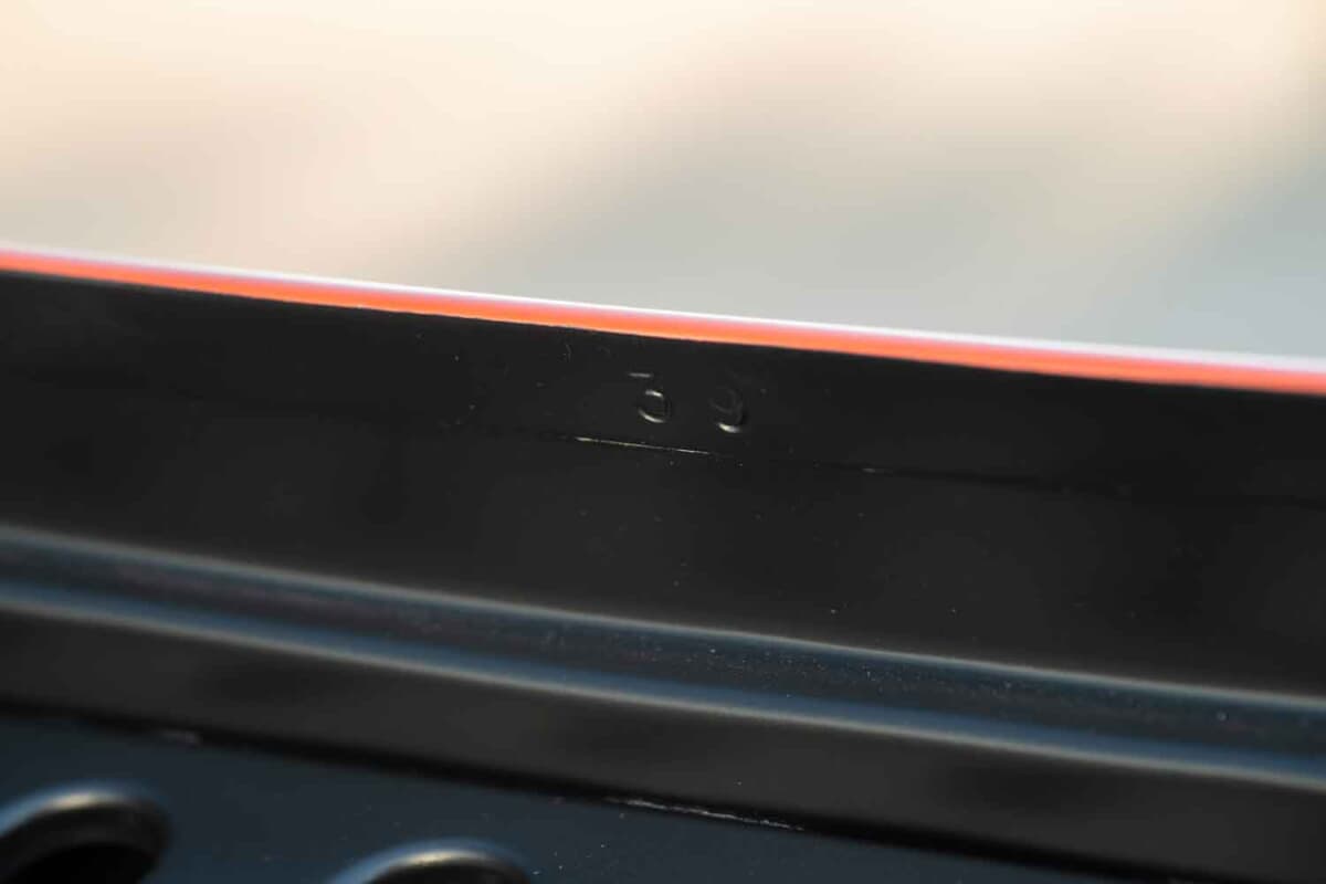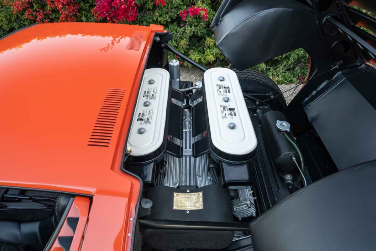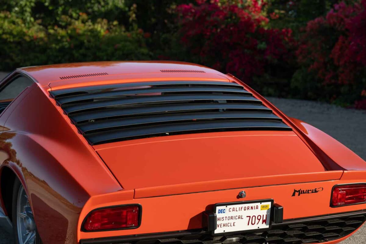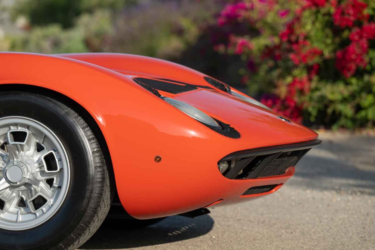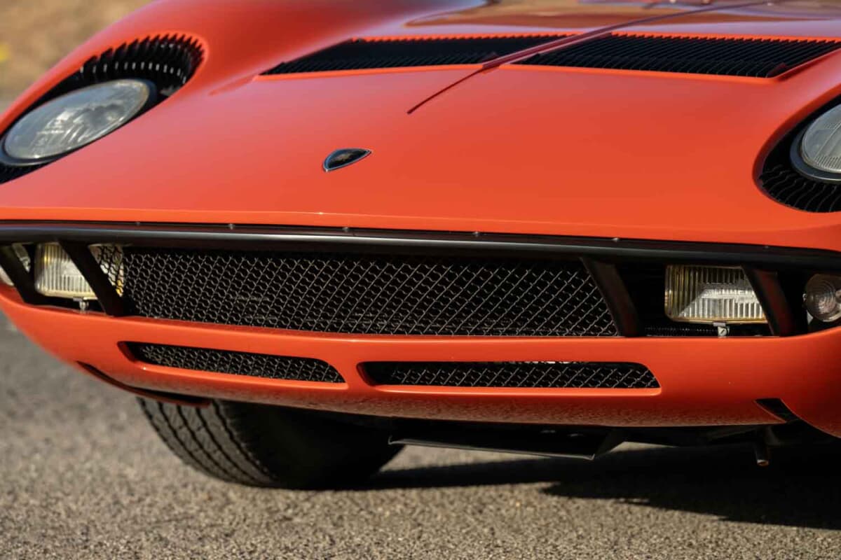 モントレー・オークションに姿を現したミウラは、先に触れたとおり1967年式であり、シャシーナンバーは「3057」である。ポロ・ストリコによれば、ランボルギーニから39番目にラインオフされたモデルだ。厚さが0.9mmというボディ外板を持ち、トータルで274台が生産されたP400ミウラの中でも120台ほどしか存在しない前期型である。車重の公称値は980kgであり、その軽量性はミウラファンからも高く評価されている。