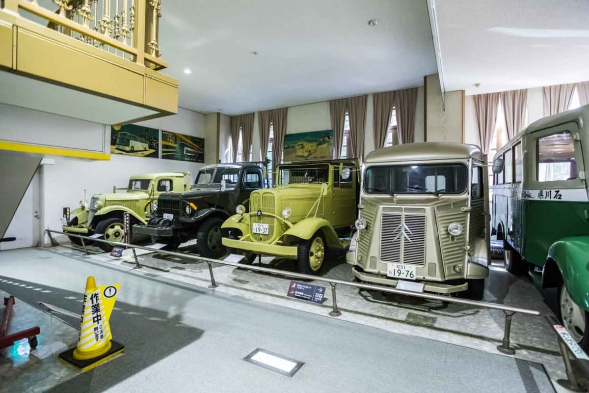 館内にはトヨタ博物館ですら所有していないトヨタABRフェートンや、JACニューエラ、くろがね四起など、自動車黎明期の珍しい国産車が並ぶ。ドディオンブートン、ベルリエVG22など1世紀以上前の外国車、さらにジオット キャスピタ(スバルの12気筒水平対向エンジンを搭載)のような世界に1台しかない個体など貴重な車両も収蔵されている。