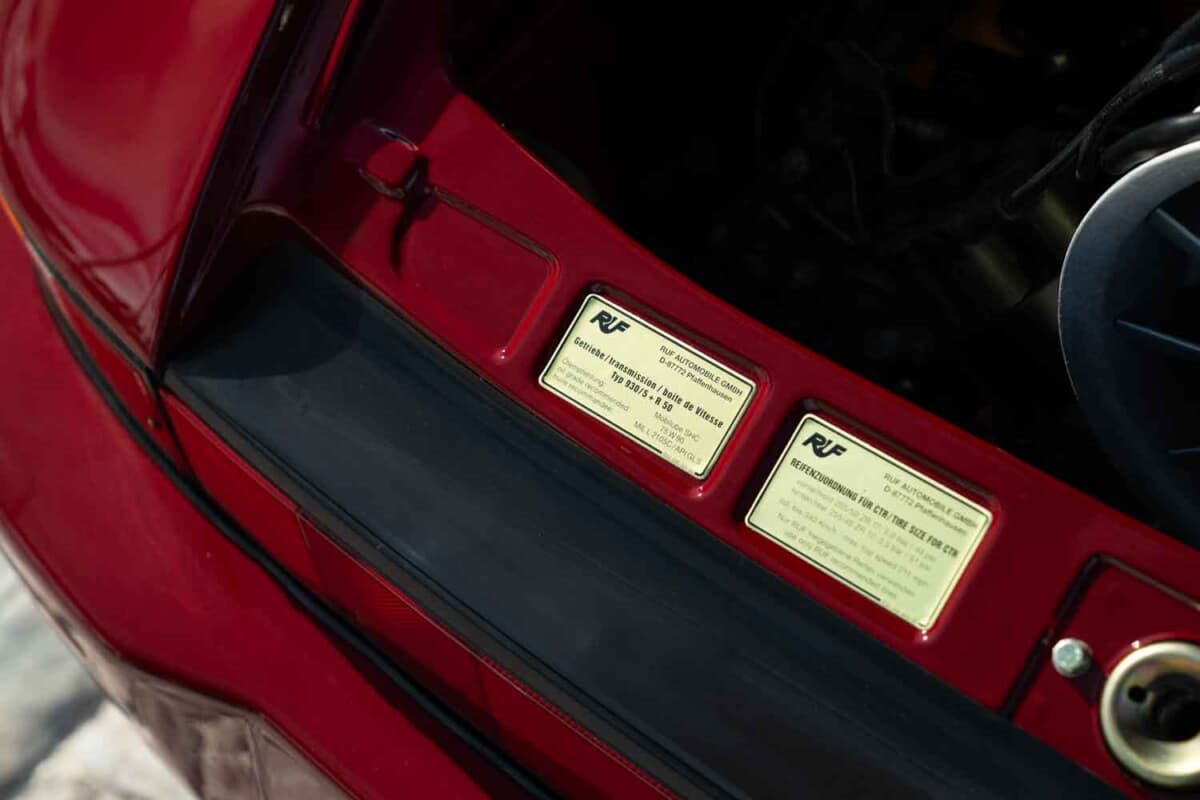 CTRはポルシェの930型911カレラのホワイトボディをベースに、リアに排気量を3367ccに拡大された最高出力469psの水平対向6気筒ツインターボエンジンを搭載したモデルである。ちなみにRUFは、搭載エンジンの最高出力をいかなる悪条件下でも保証する数字としているため、実際にはそれをはるかに超えるパワーが発揮されていたのは間違いない。