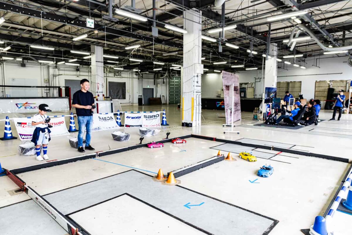 屋内スペースにはグランツーリスモコーナー、TOYOTA RC CAR CLUBによるラジコンコース、グッズ製作のワークショップが設置された。ステージでは抽選会やアワードの表彰、ゲストによるトークショーなど、さまざまなコンテンツが用意されていた。
